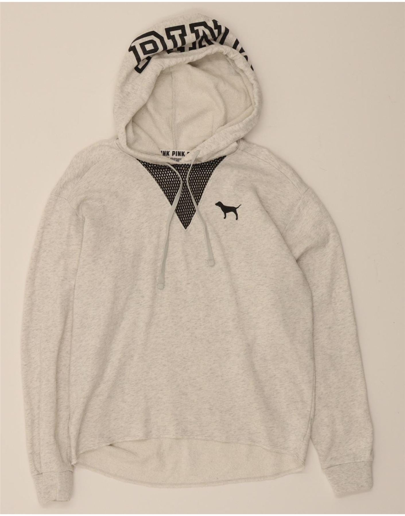 Suéter feminino com capuz grande rosa VICTORIAS SECRET Reino Unido 6 XS cinza manchado