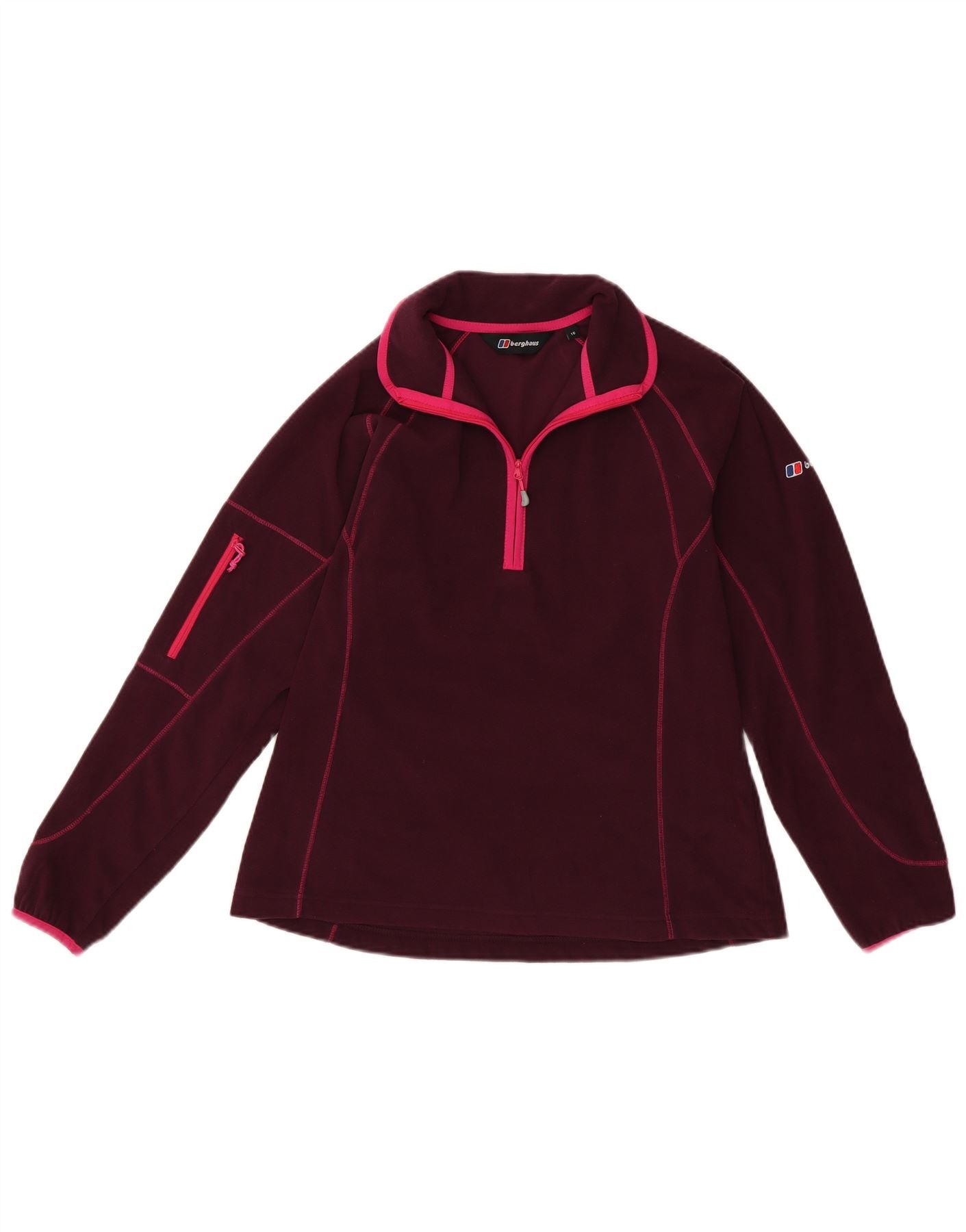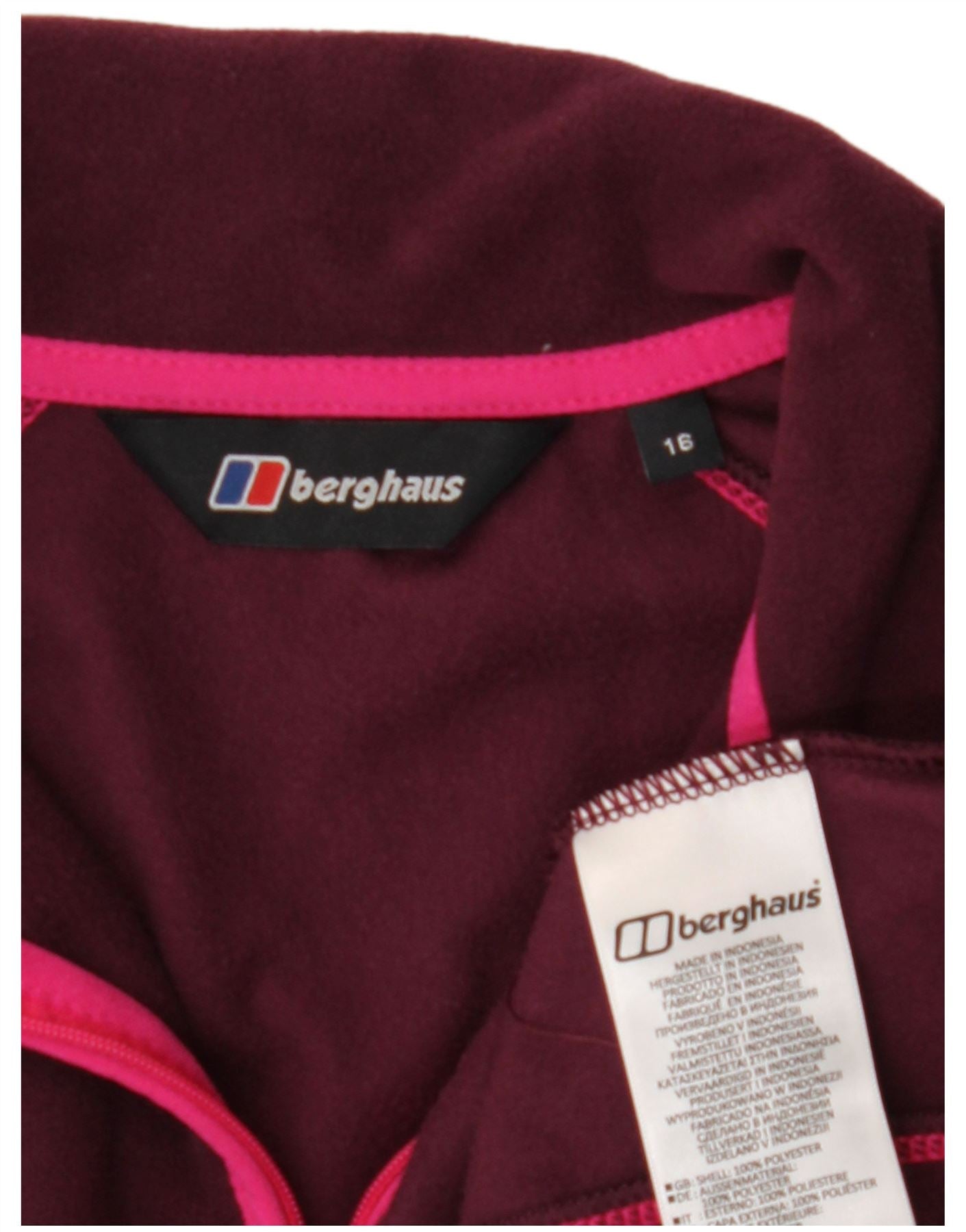 Suéter feminino de lã com zíper e gola BERGHAUS Reino Unido 16 grande poliéster cor de vinho