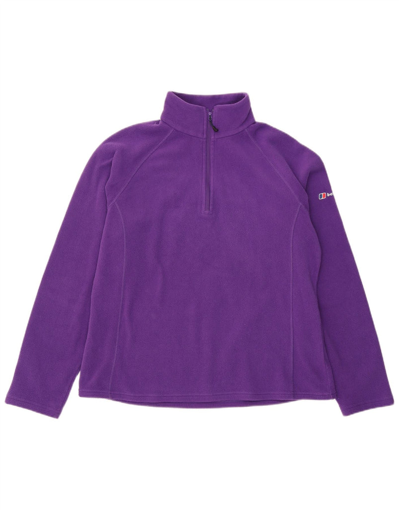 Suéter feminino de lã com zíper e gola BERGHAUS Reino Unido 16 grande roxo poliéster