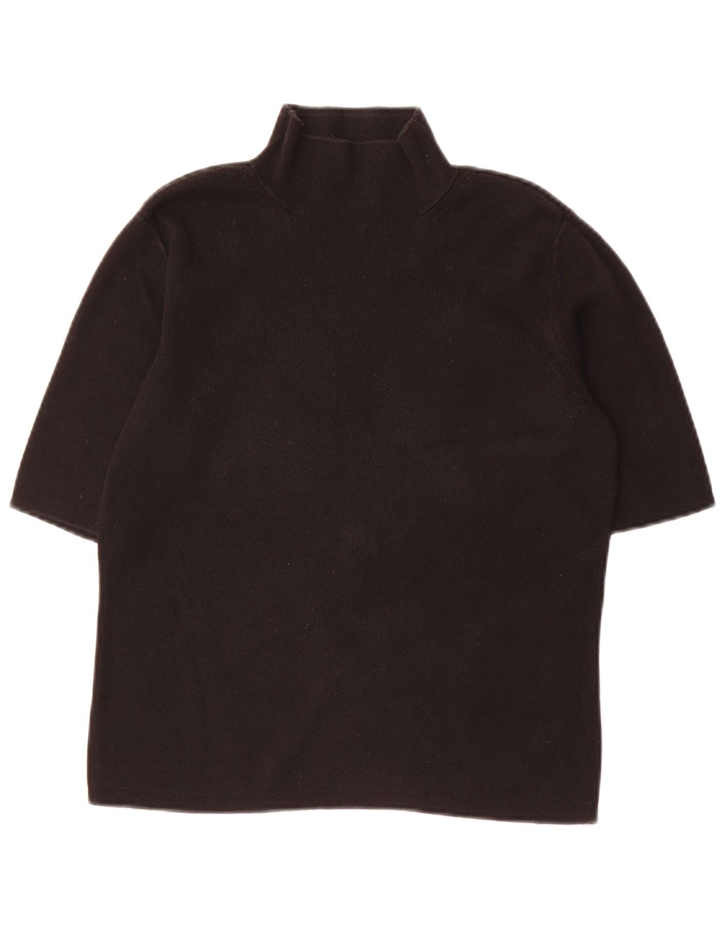 Suéter feminino de manga curta com gola tartaruga TALBOTS Reino Unido 10 pequeno preto