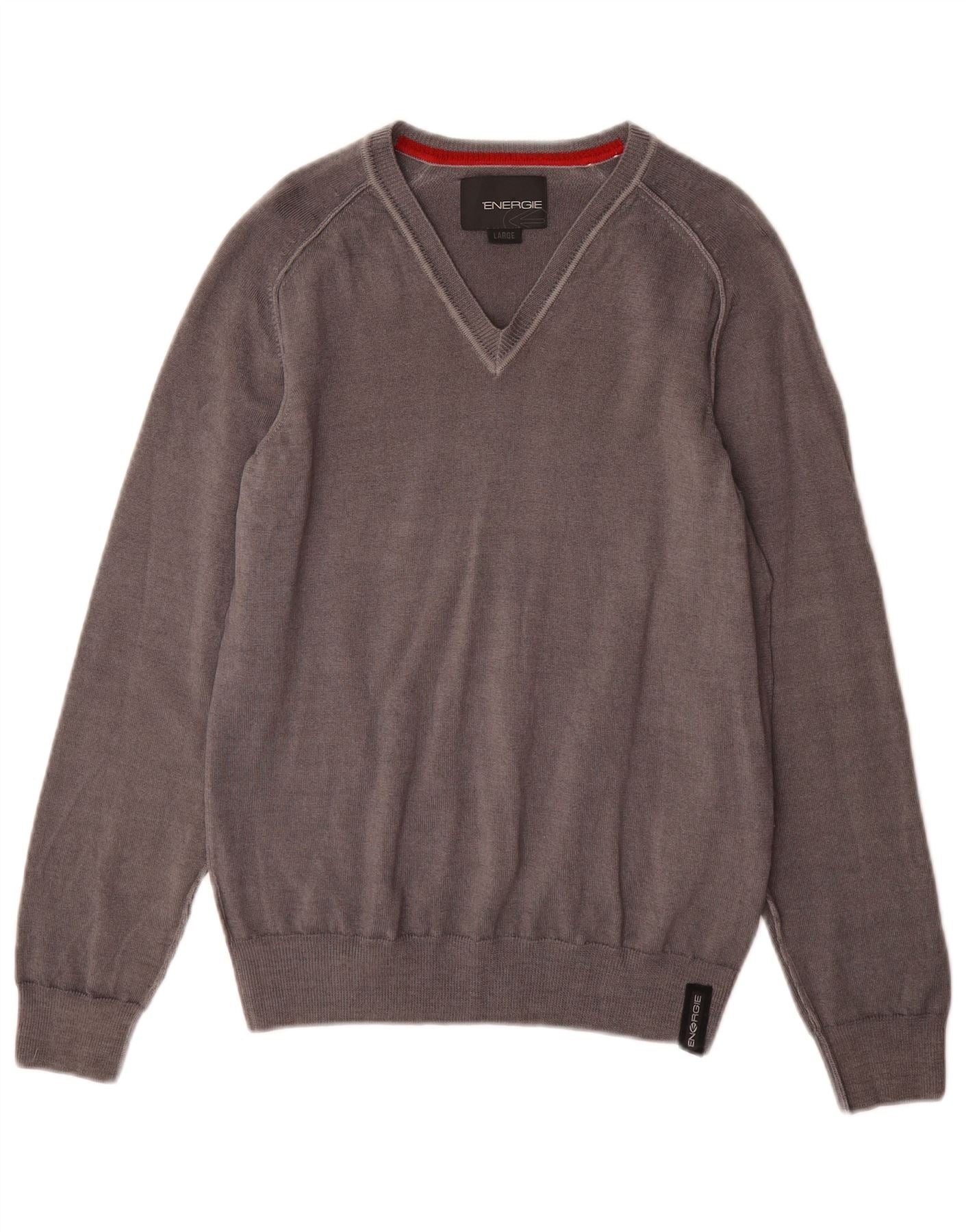 Suéter feminino ENERGIE com decote em V Reino Unido 14 grande lã cinza