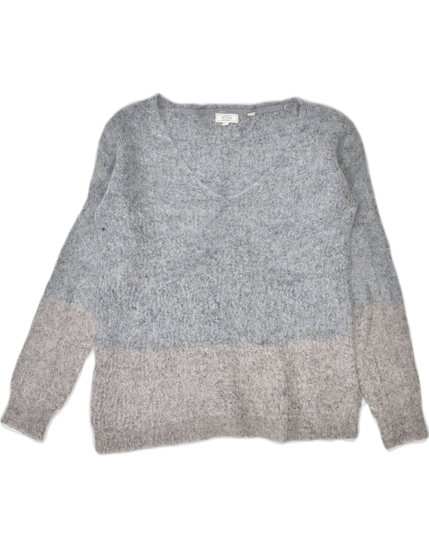 Suéter feminino FAT FACE solto com decote em V Reino Unido 10 pequeno cinza