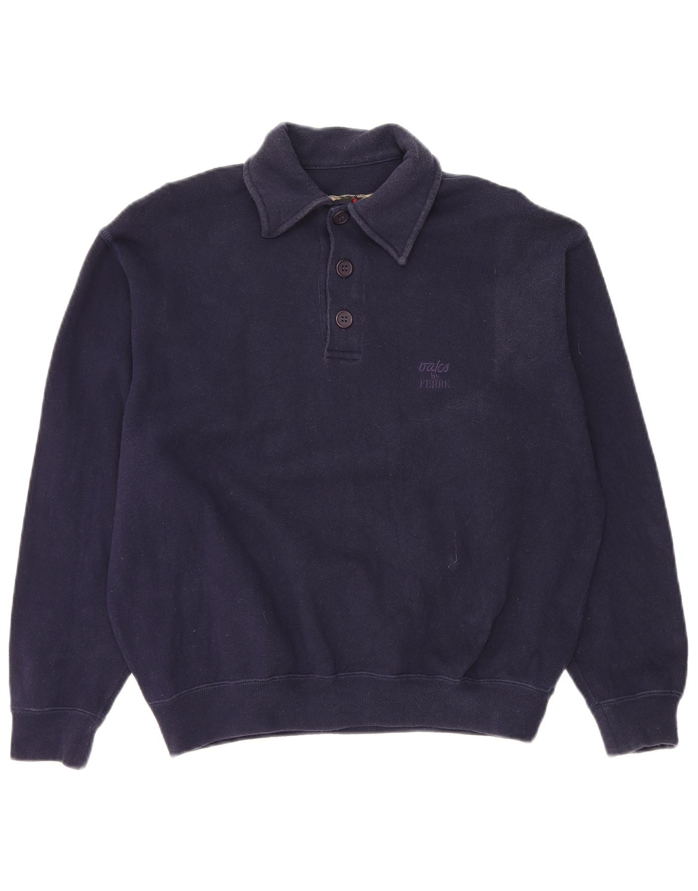 Suéter feminino FERRE Oaks com gola polo Reino Unido 16 grande algodão azul marinho