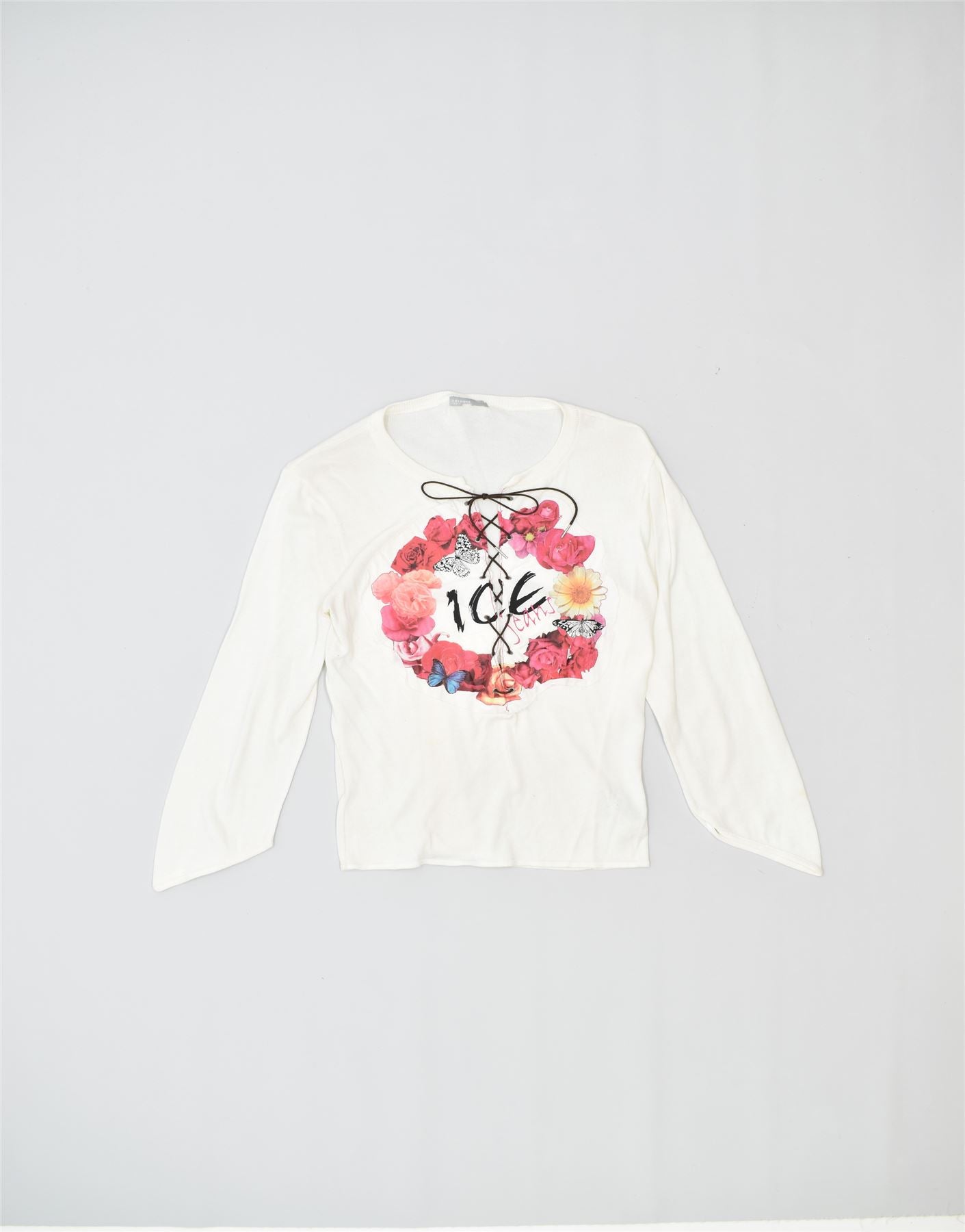 Suéter feminino ICEBERG com gola redonda e gola redonda UK 10 pequeno floral branco