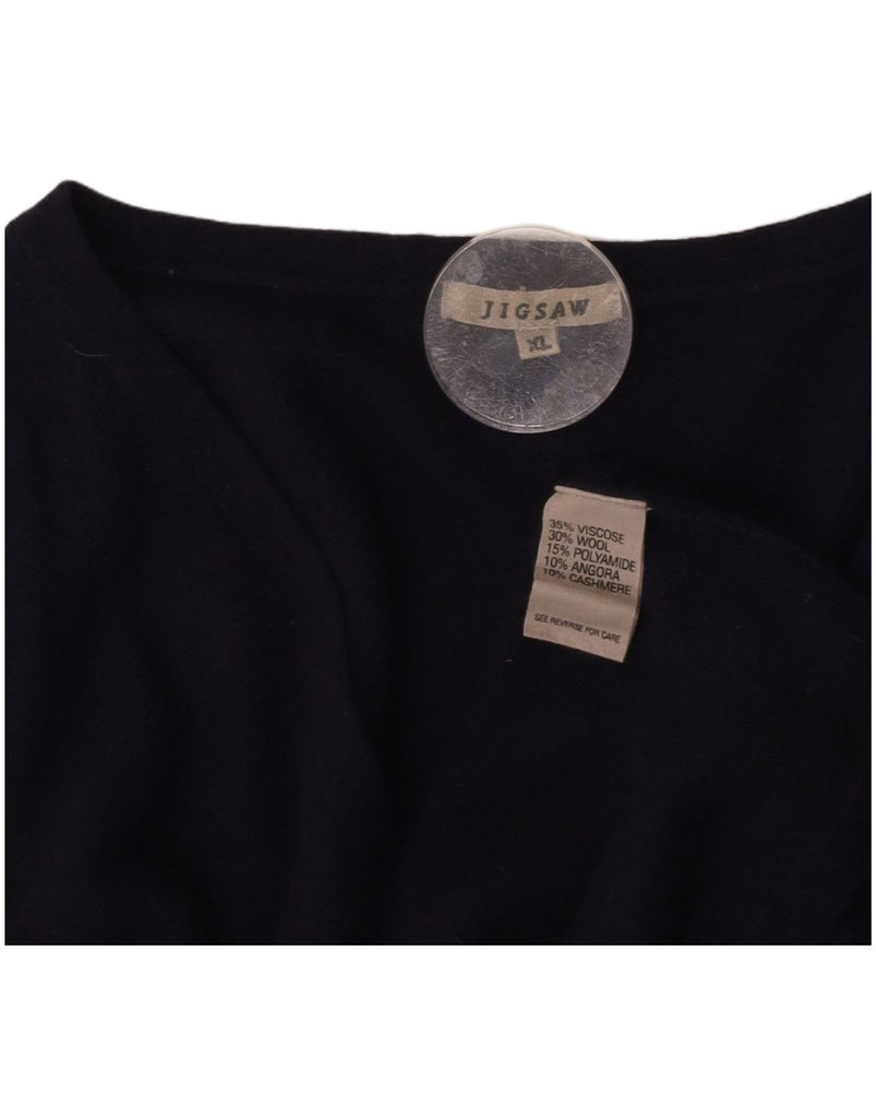 Suéter feminino JIGSAW com decote em V Reino Unido 18 XL azul marinho viscose
