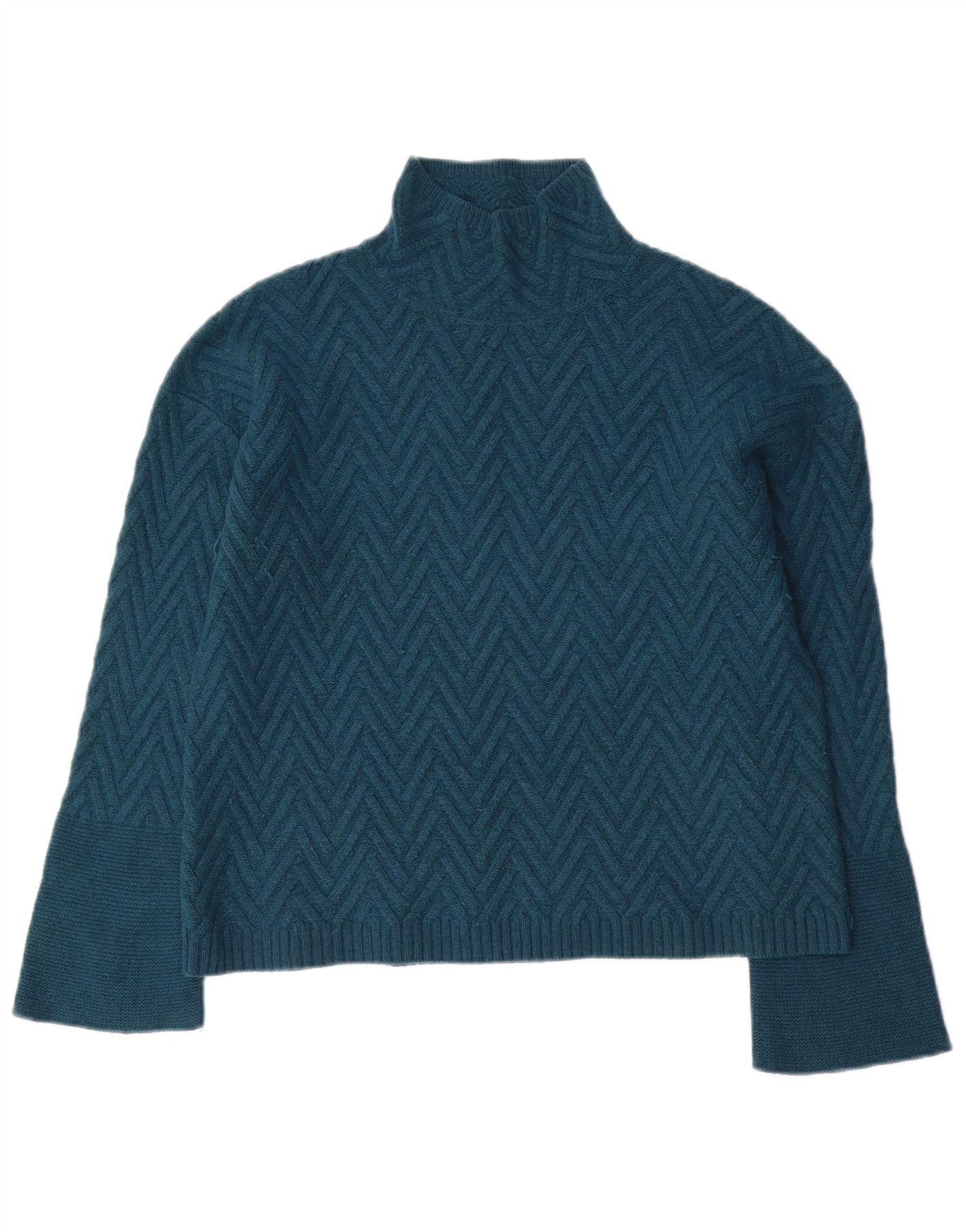 Suéter feminino JIGSAW com gola tartaruga e gola redonda Reino Unido 14 Chevron verde médio