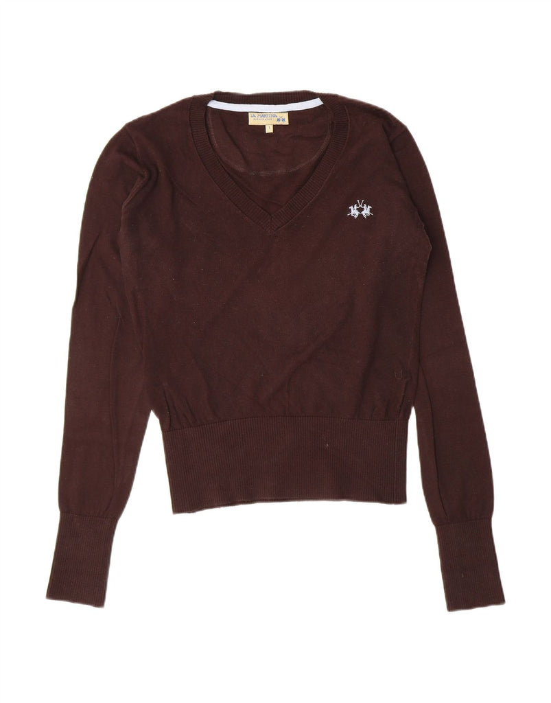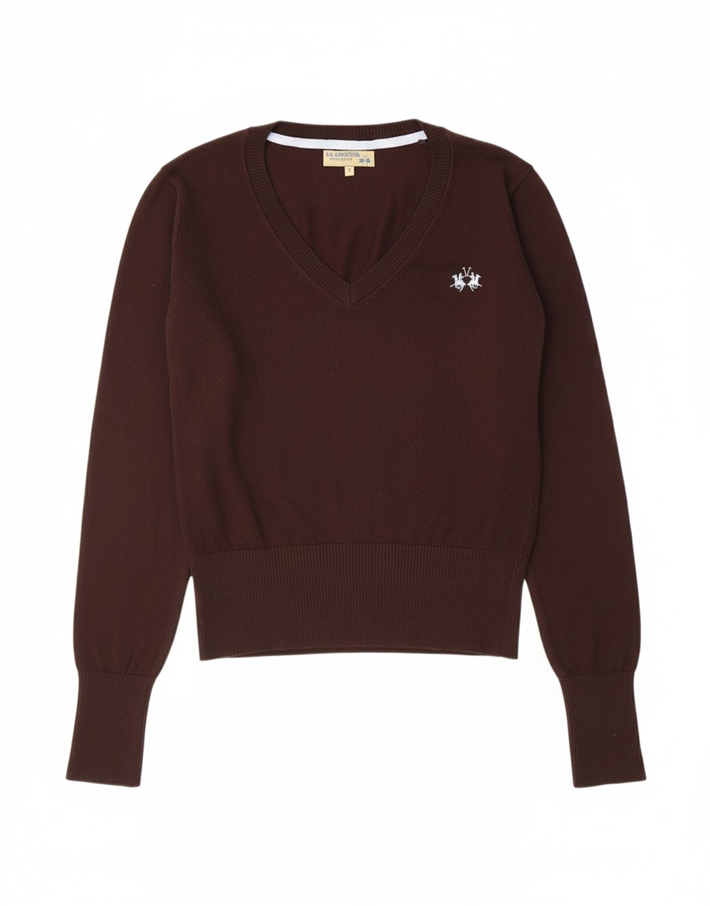 Suéter feminino LA MARTINA com decote em V solto tamanho 1 XS marrom clássico