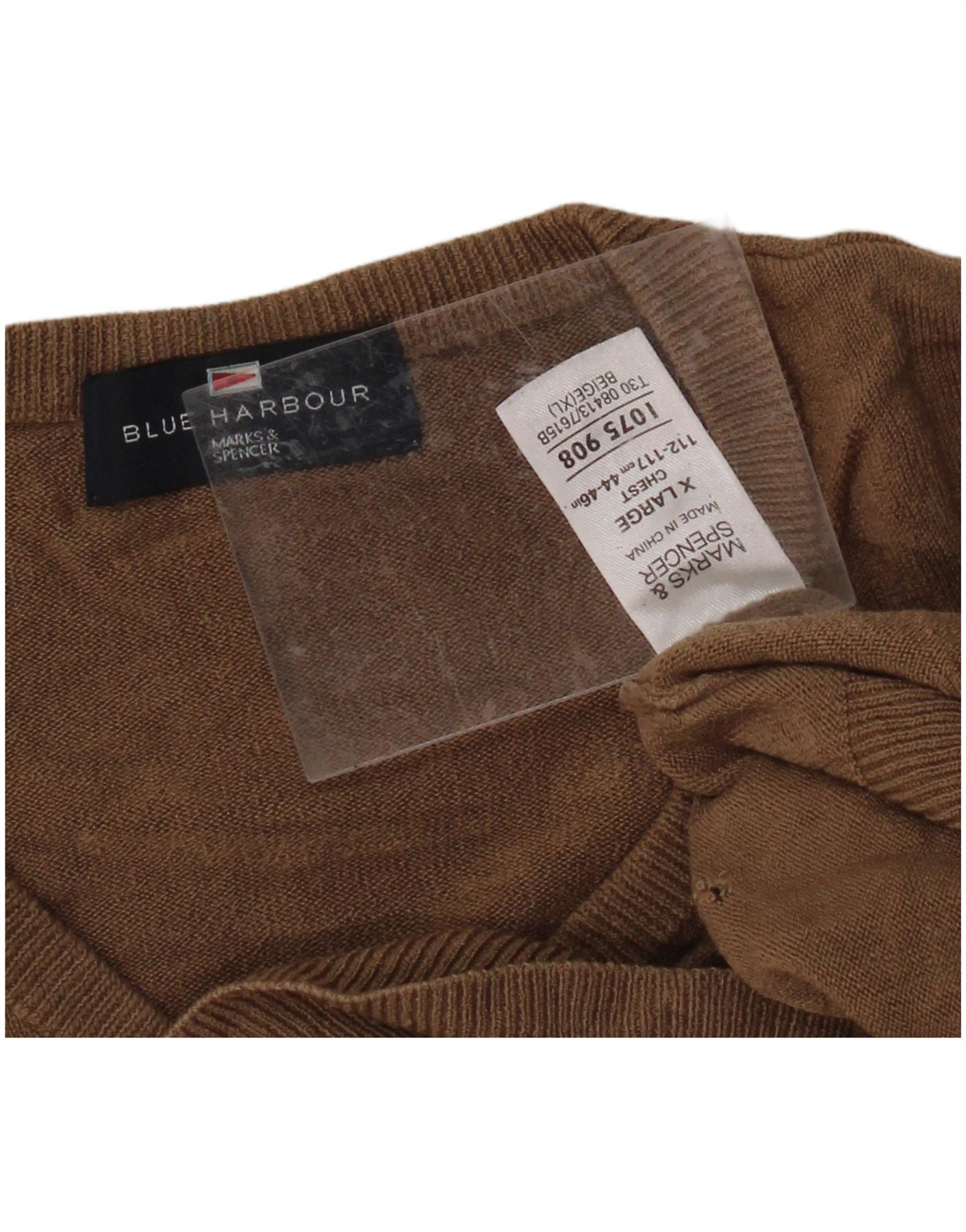 Suéter feminino MARKS & SPENCER Blue Harbor com decote em V Reino Unido 18 XL marrom