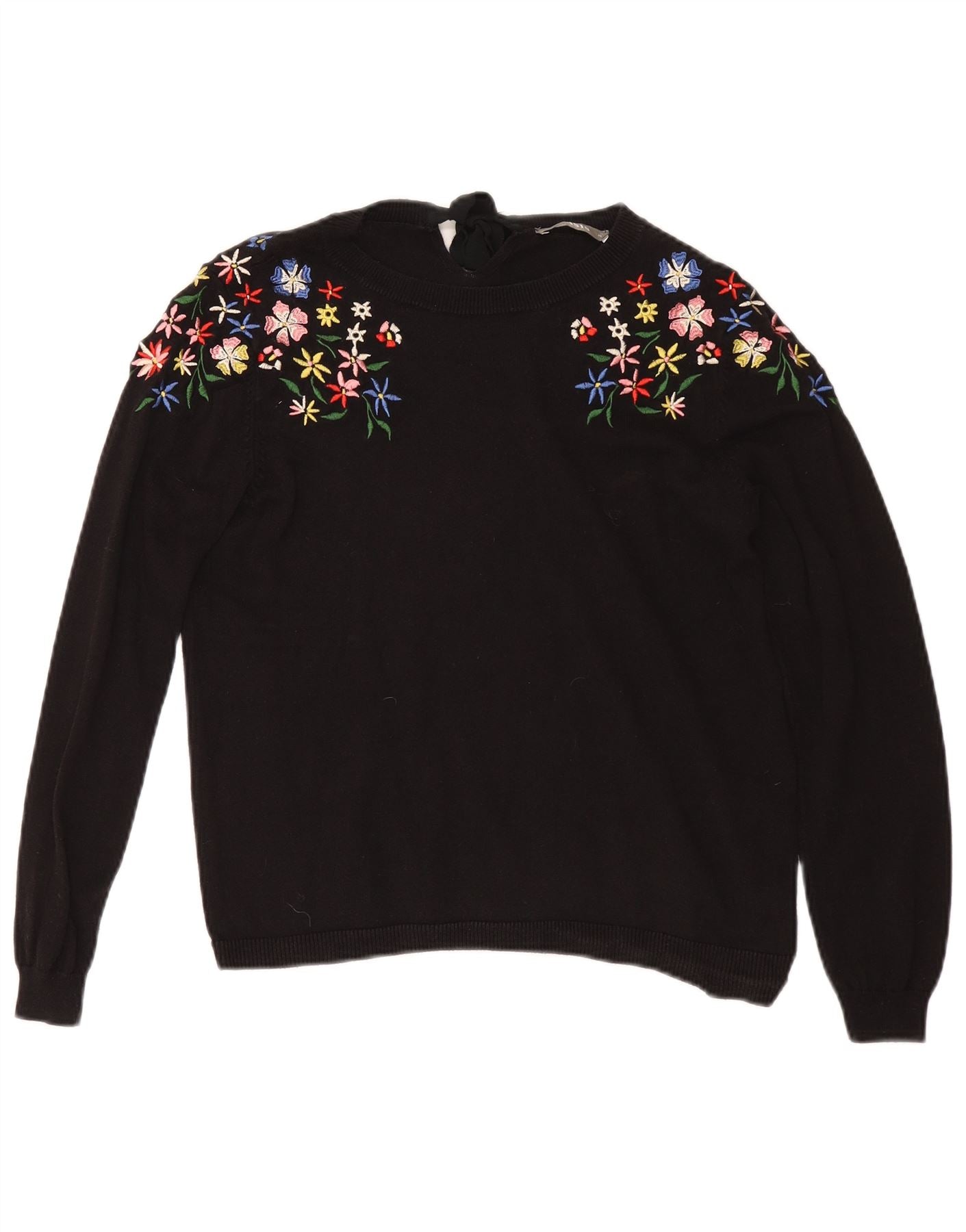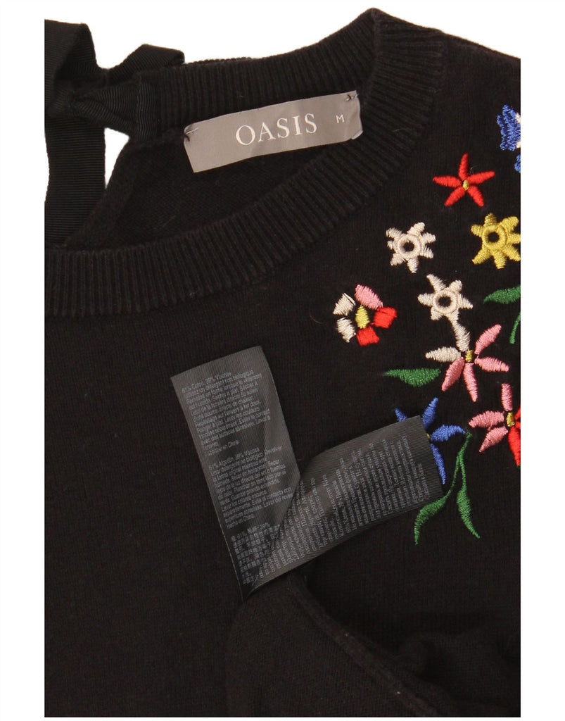 Suéter feminino OASIS com gola canoa e gola redonda Reino Unido 12 médio preto floral