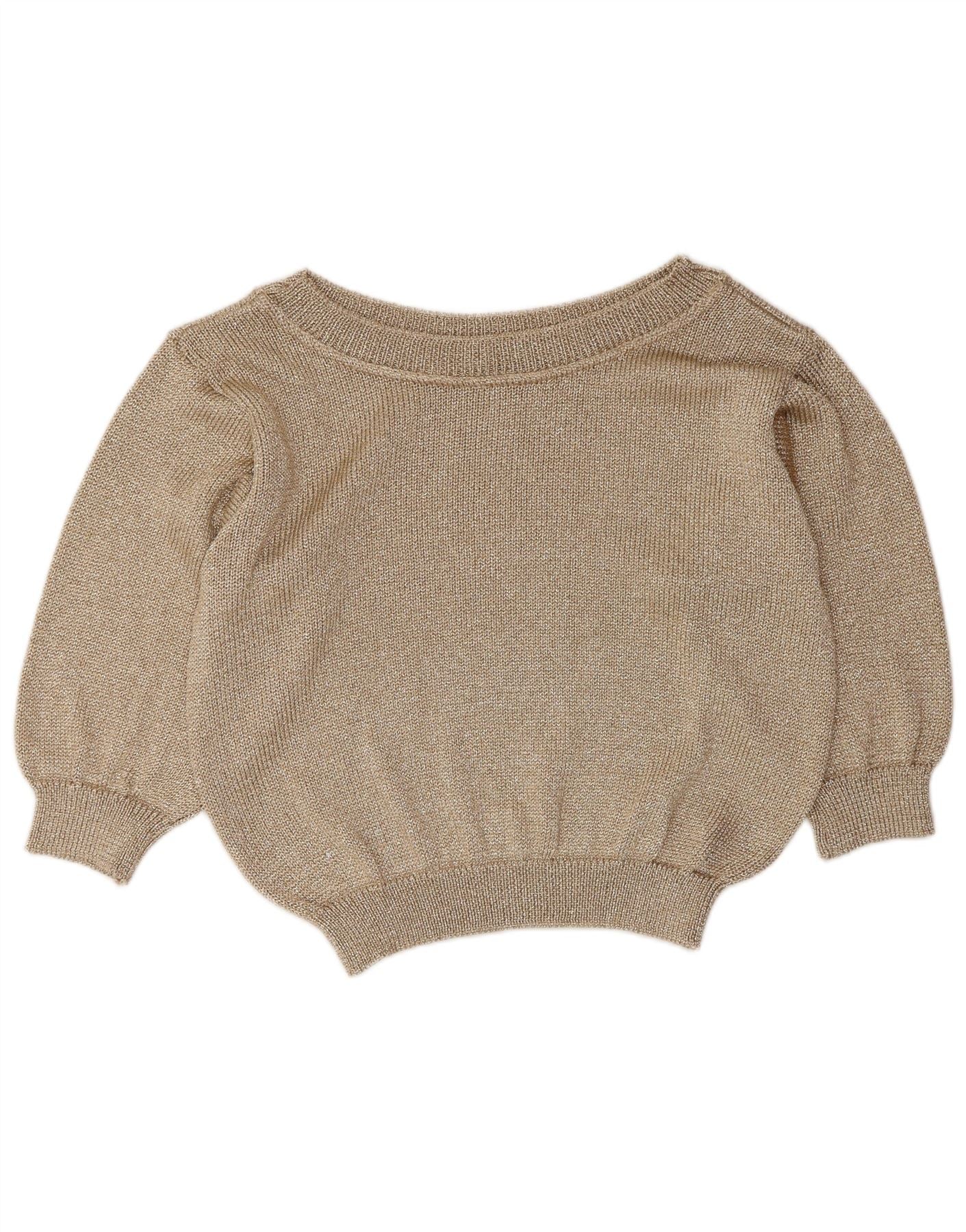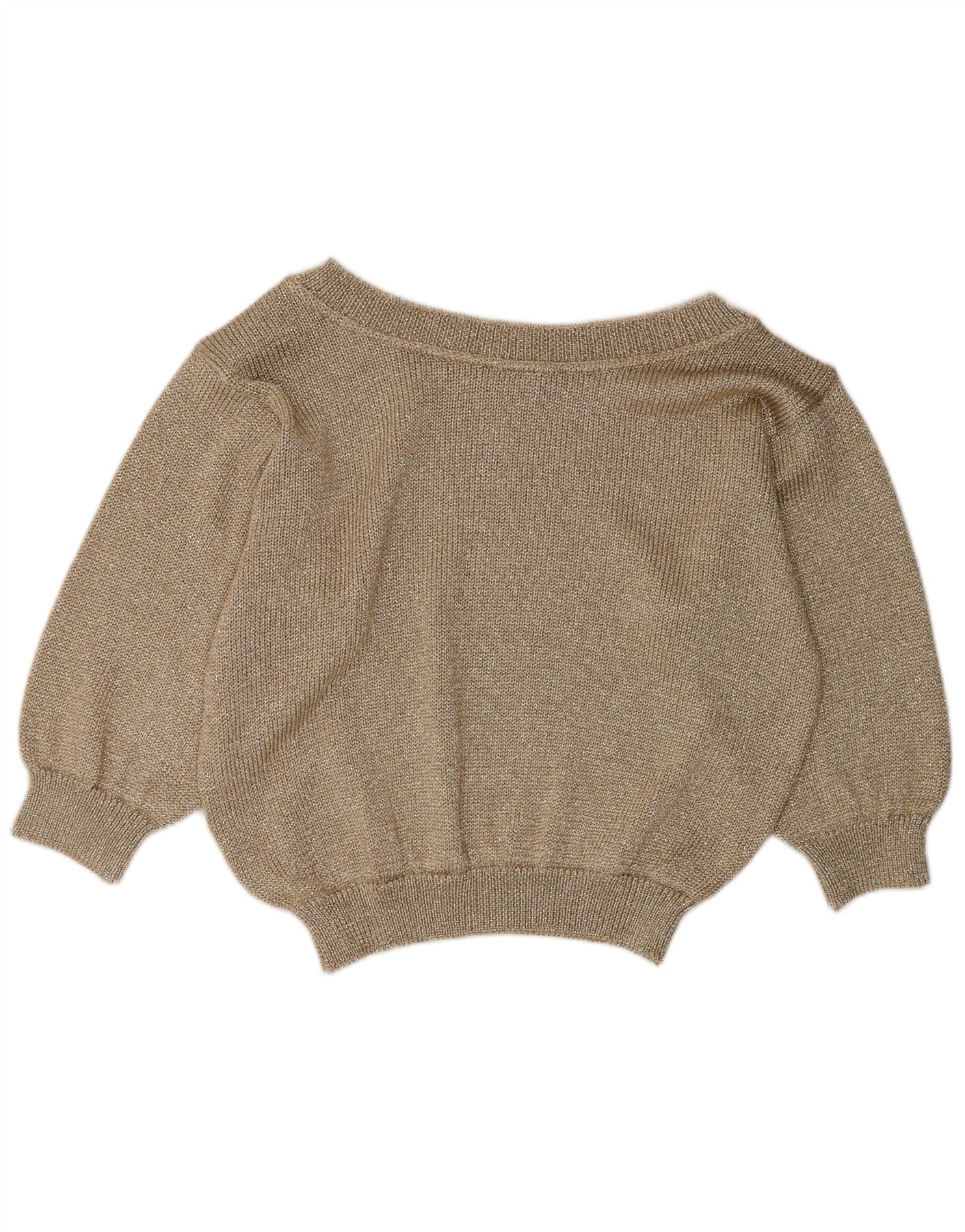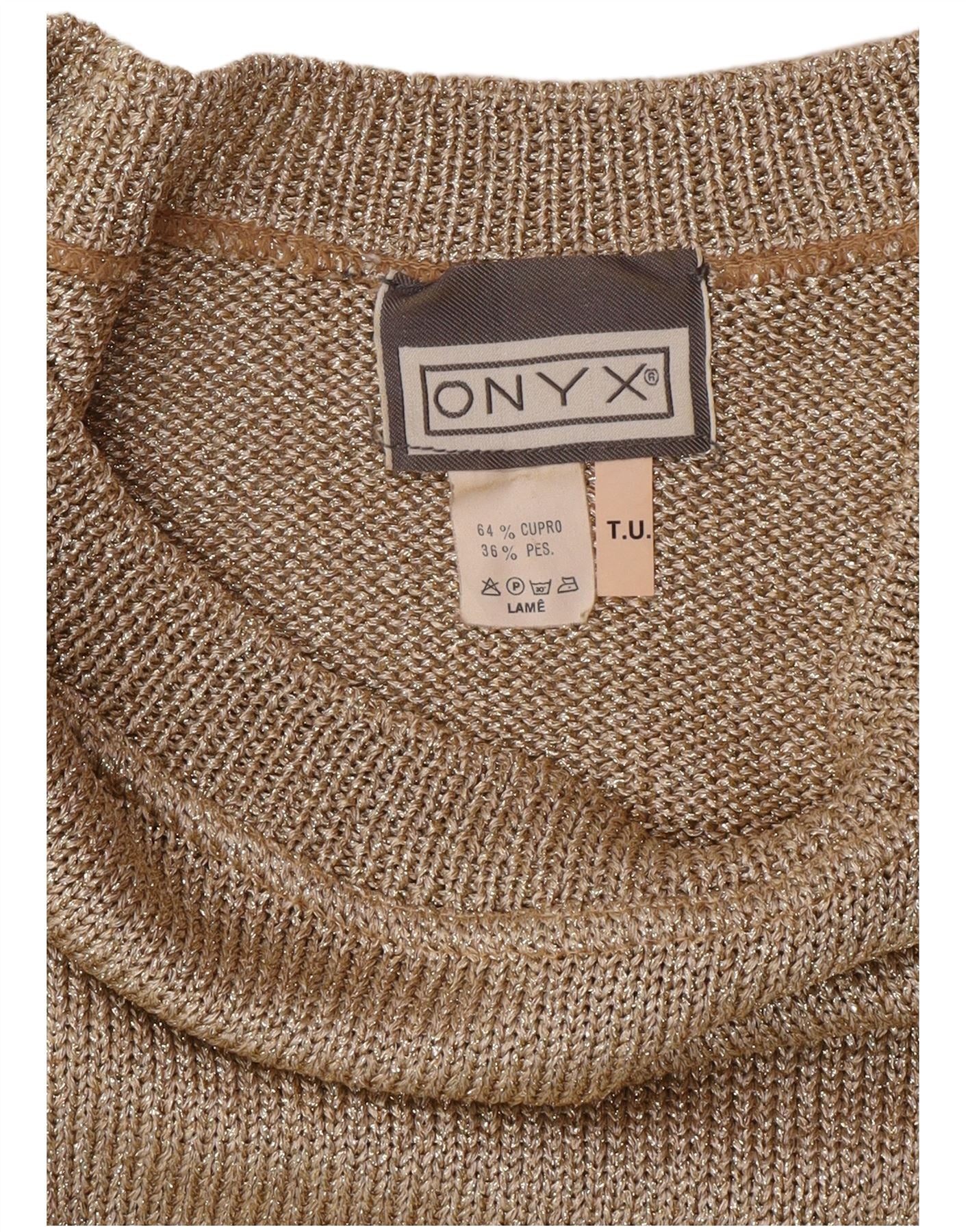 Suéter feminino ONYX com gola canoa e gola redonda UK 14 médio dourado Cupro
