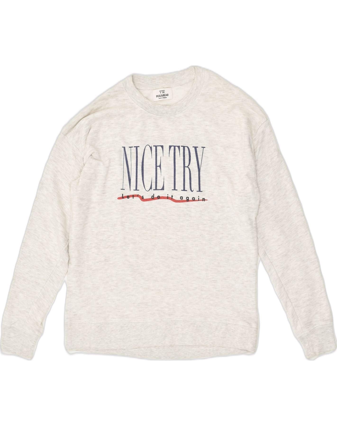 Suéter feminino pull & bear com estampa gráfica de ajuste solto Reino Unido 10 pequeno cinza