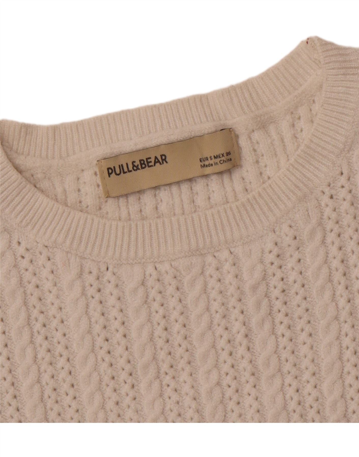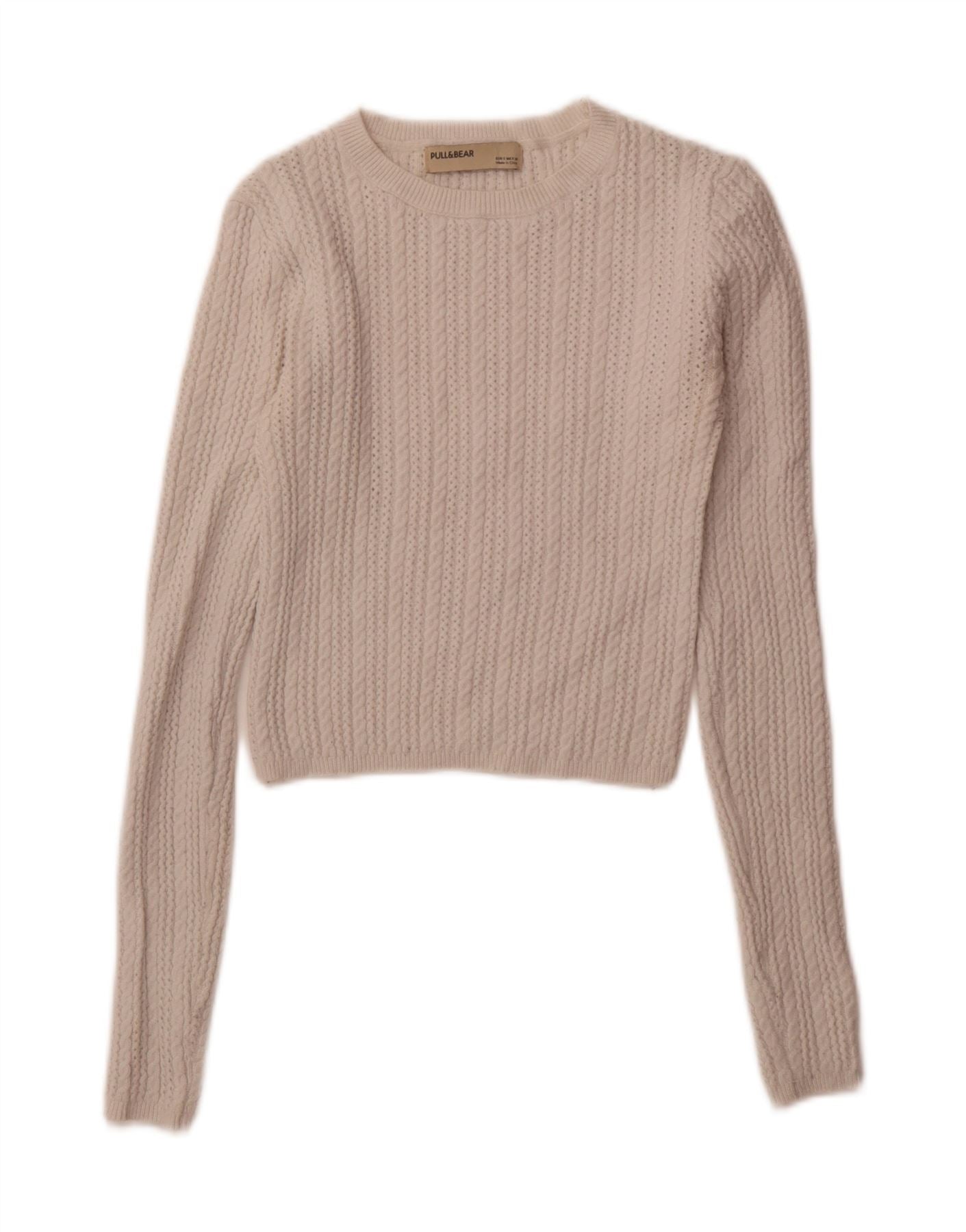 Suéter feminino PULL & BEAR com gola redonda e gola redonda UK 8 pequeno branco