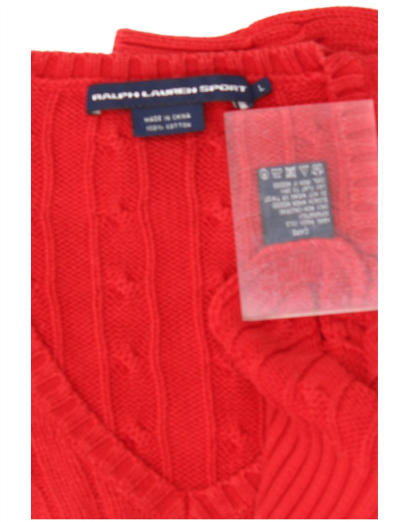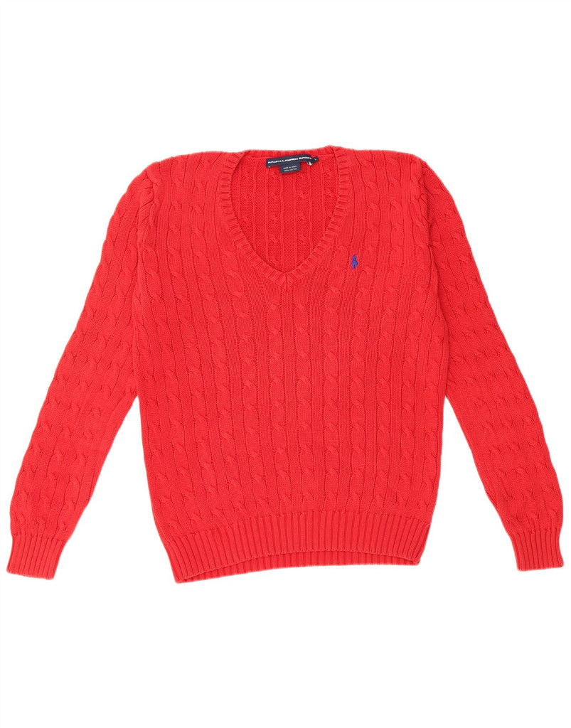 Suéter feminino RALPH LAUREN com decote em V Reino Unido 14 grande algodão vermelho