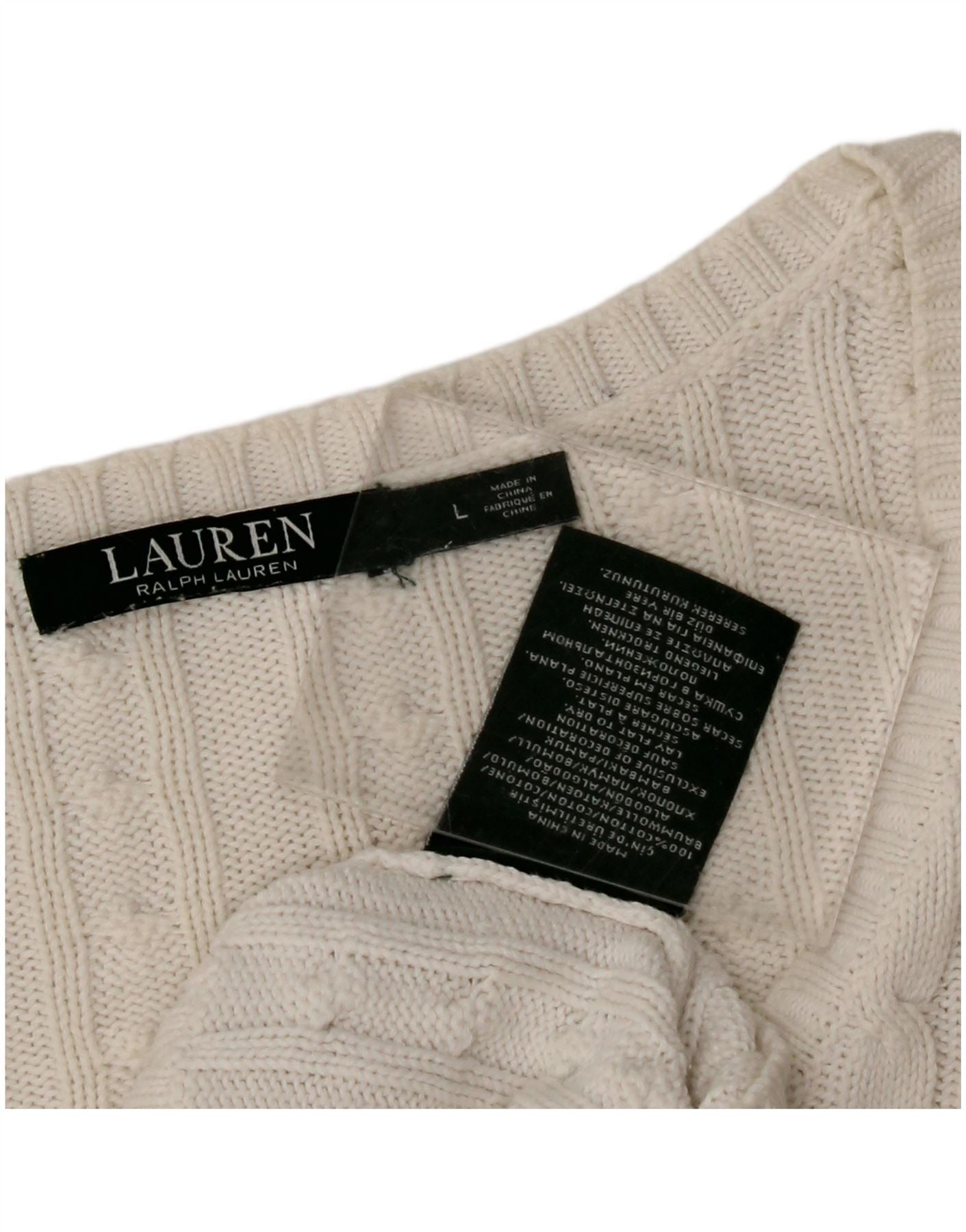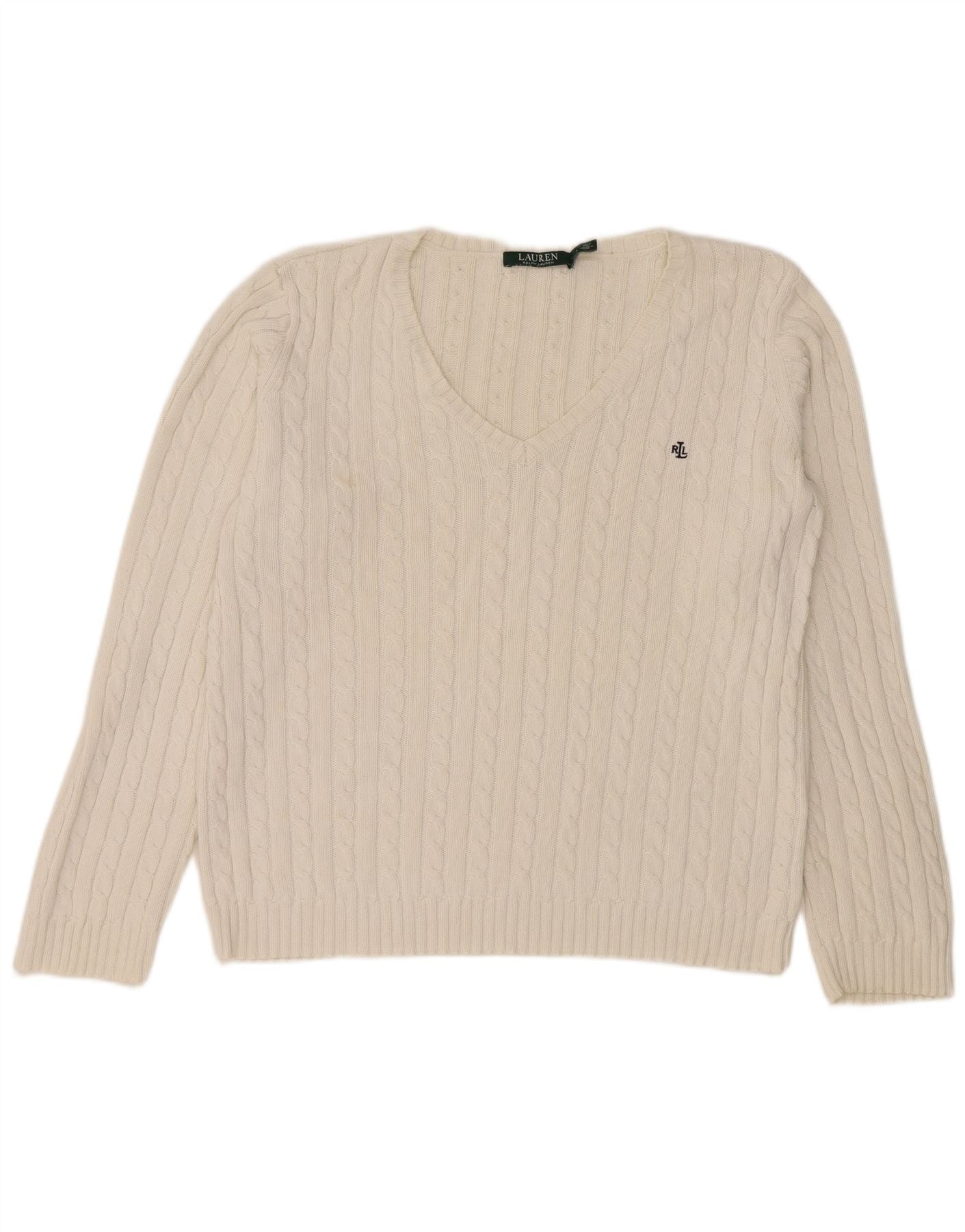 Suéter feminino RALPH LAUREN com decote em V Reino Unido 16 grande algodão branco