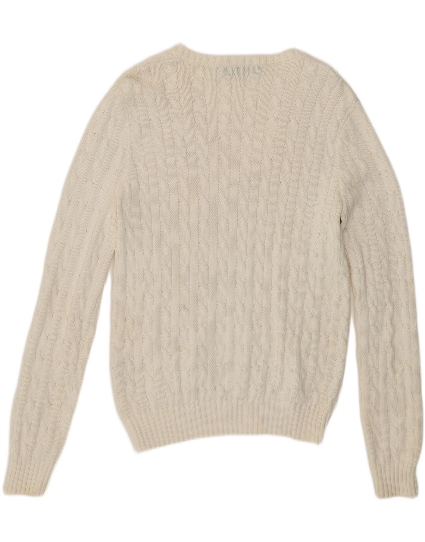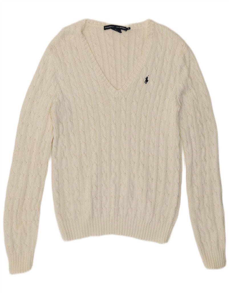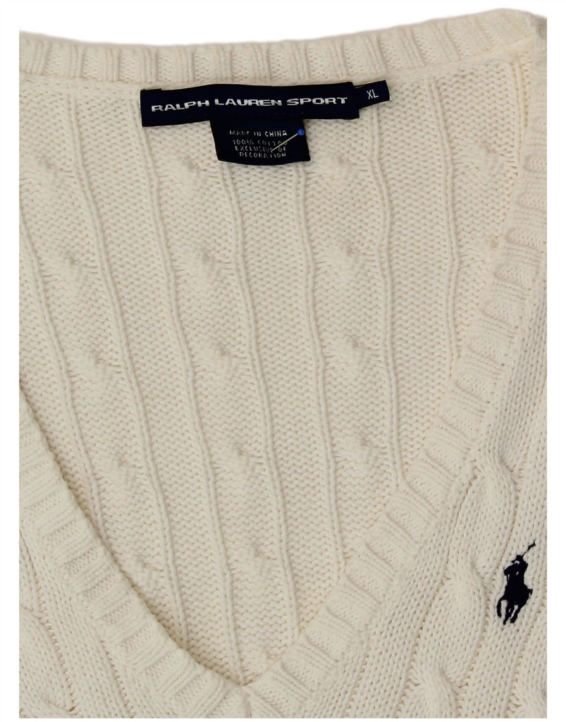 Suéter feminino RALPH LAUREN com decote em V Reino Unido 18 XL algodão branco