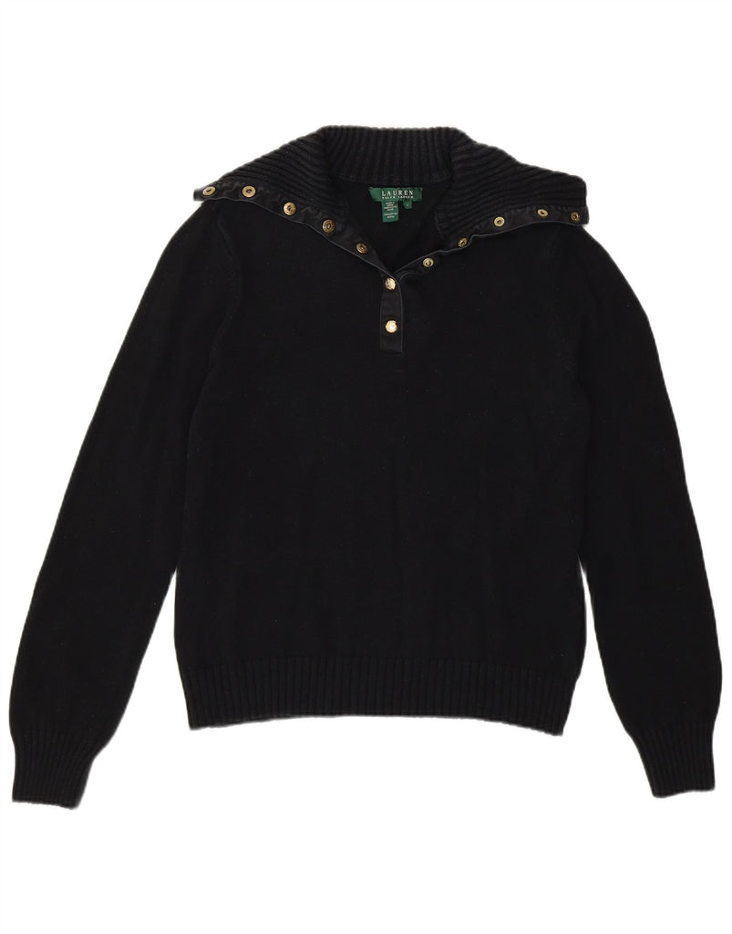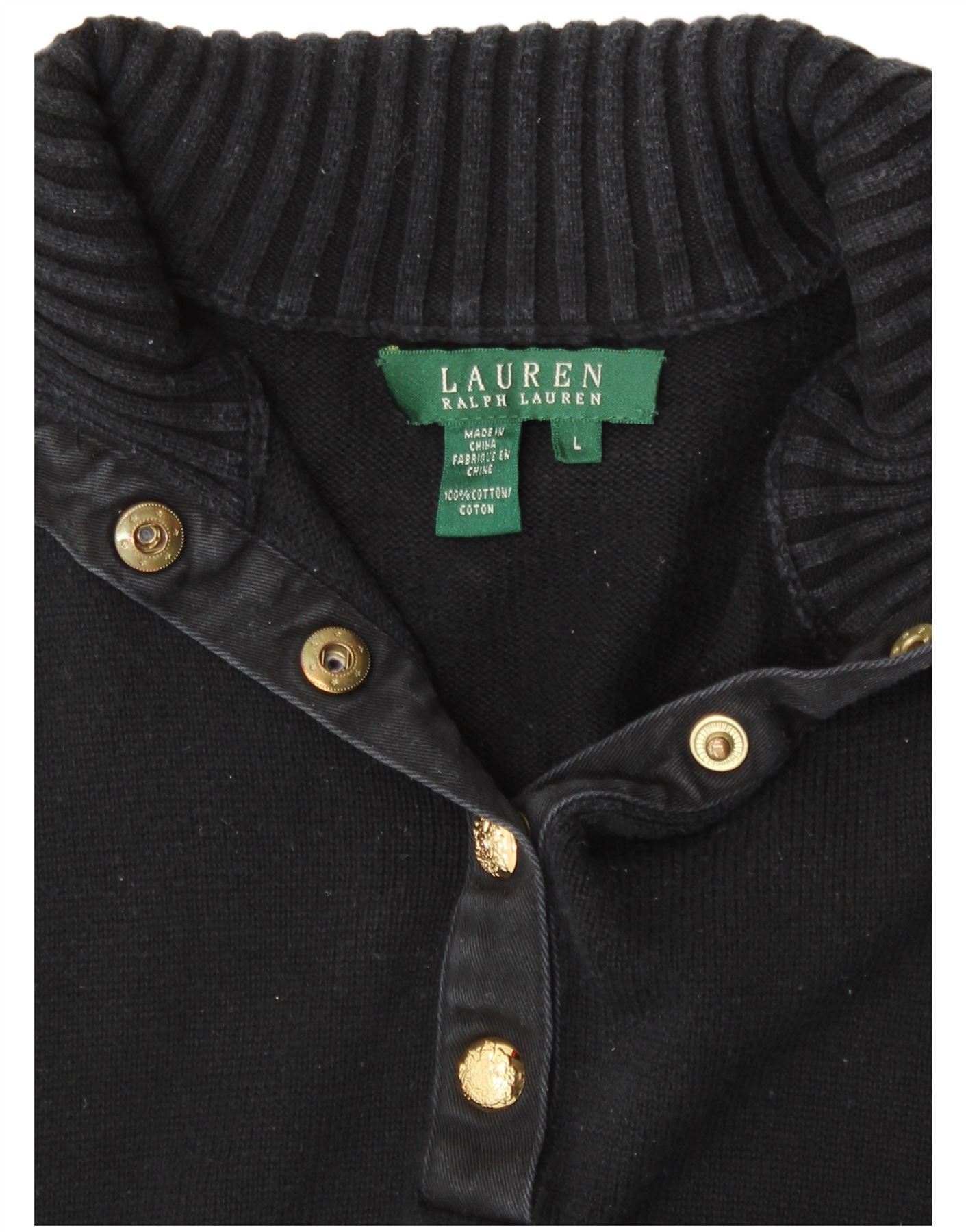 Suéter feminino RALPH LAUREN com gola redonda e botão, tamanho UK 14, grande, preto, algodão