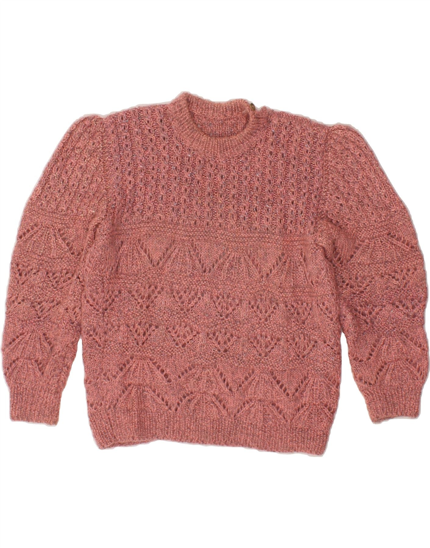 Suéter feminino VINTAGE com gola redonda UK 12 rosa médio