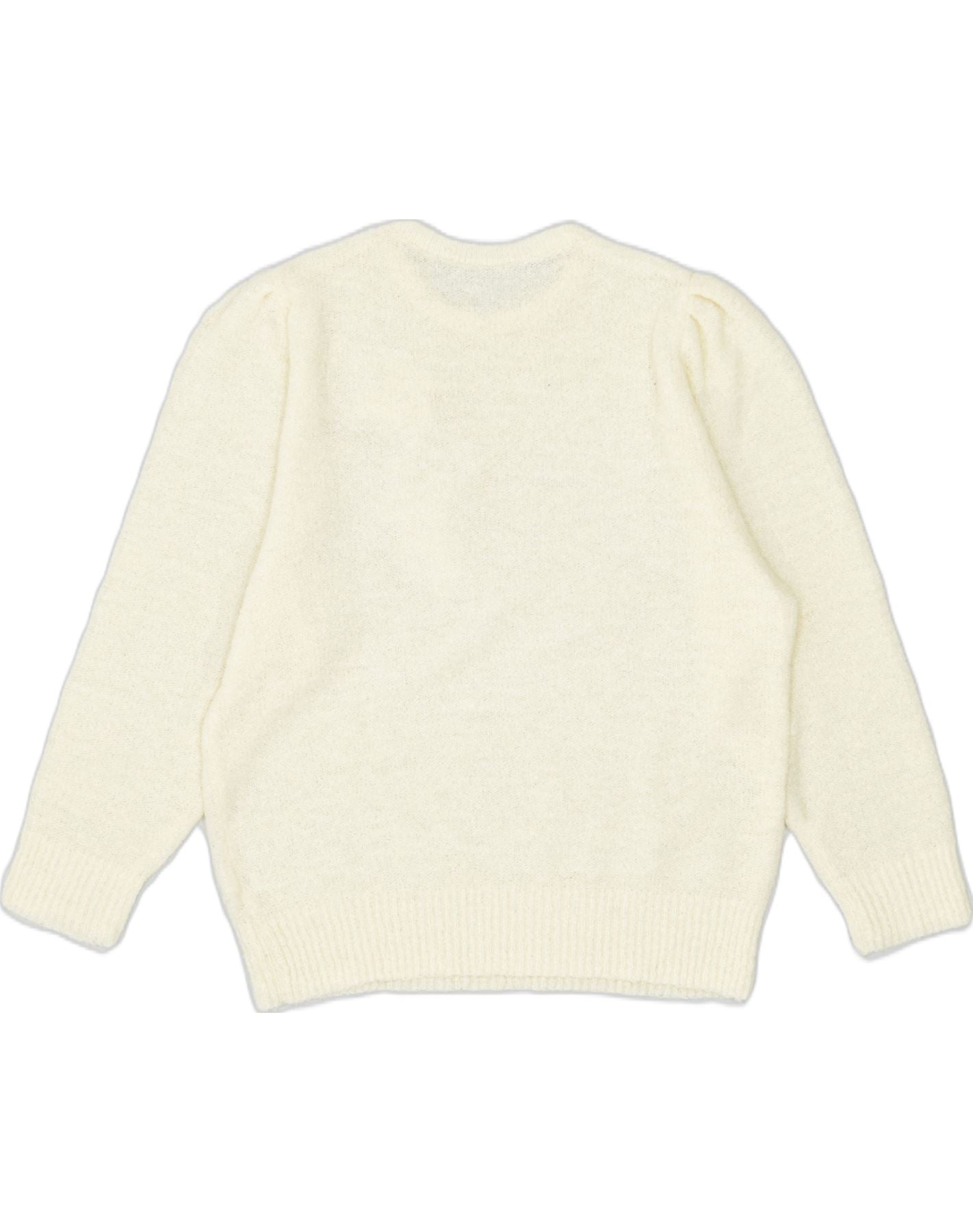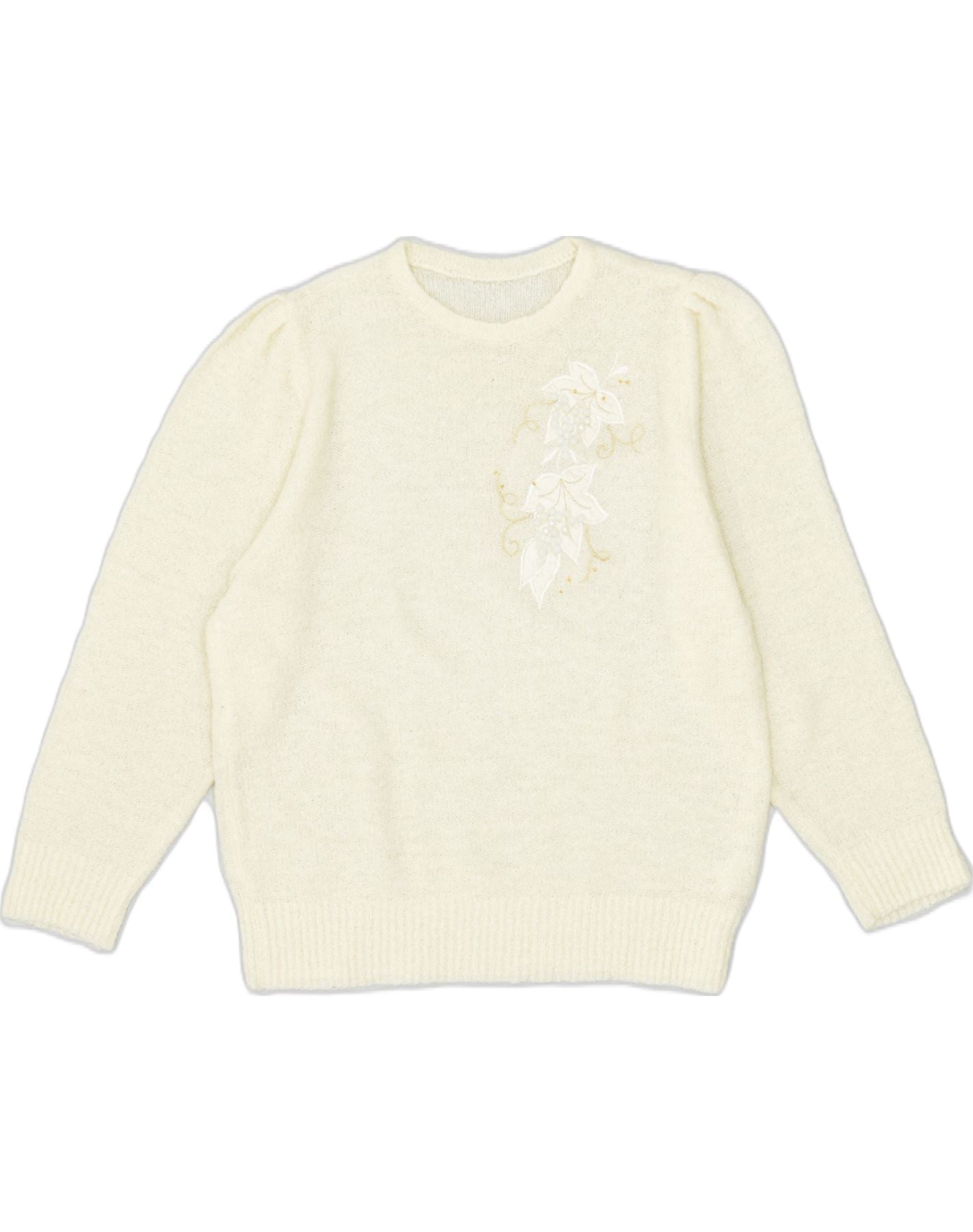 Suéter feminino VINTAGE com gola redonda UK 20 2XL flor branca