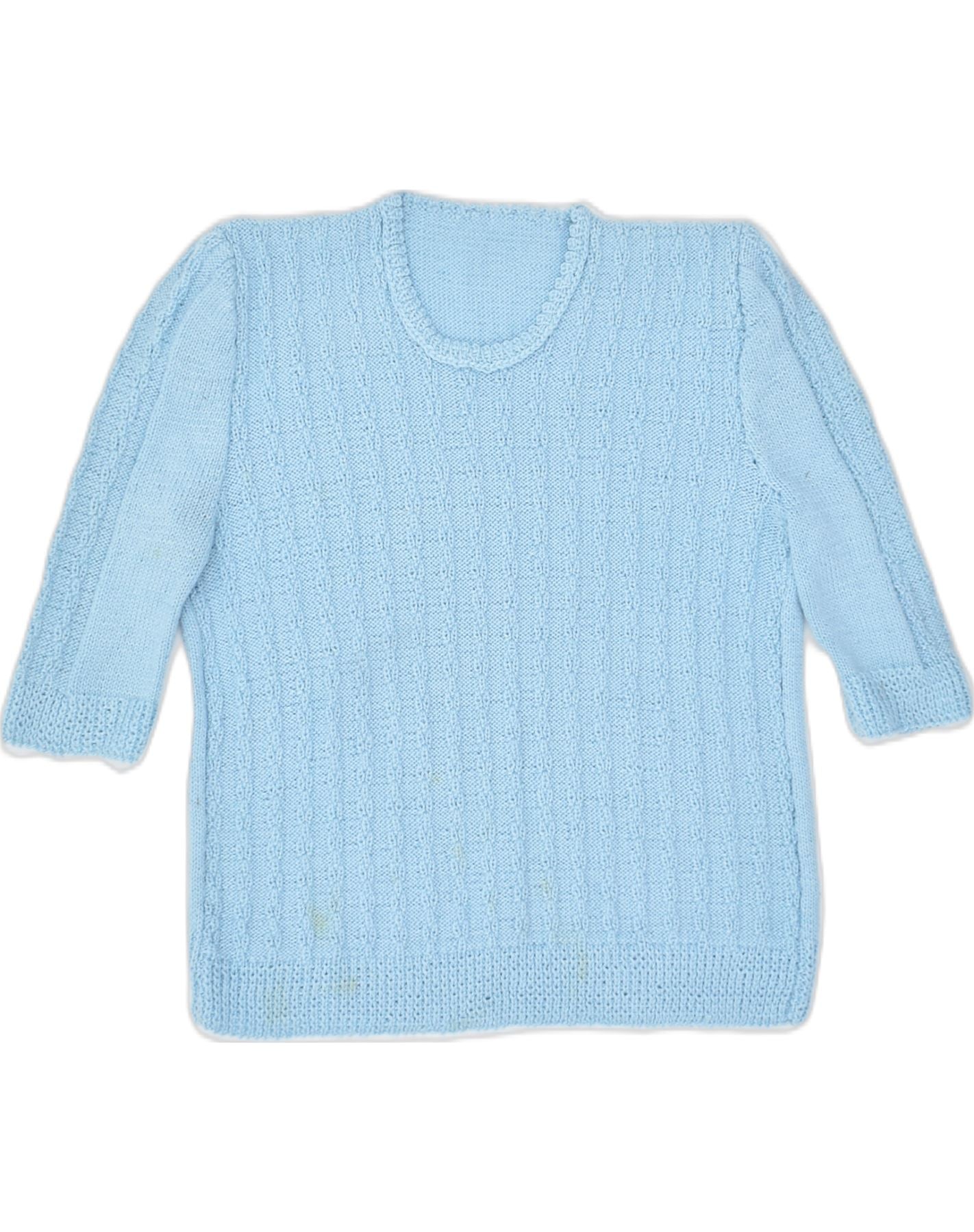 Suéter feminino VINTAGE com gola redonda UK 4 XS azul