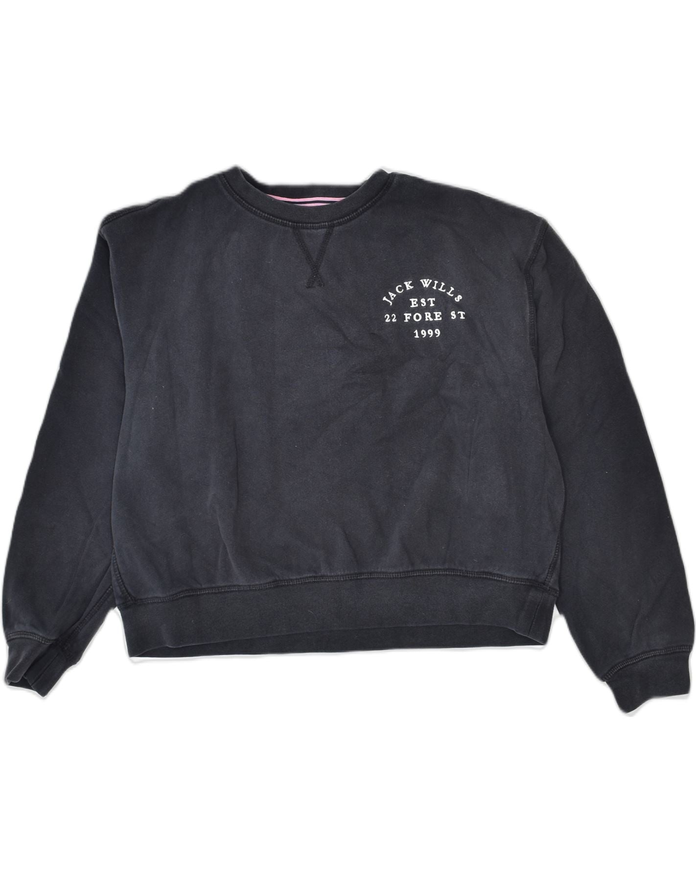 Suéter gráfico feminino JACK WILLS Reino Unido 10 pequeno algodão preto