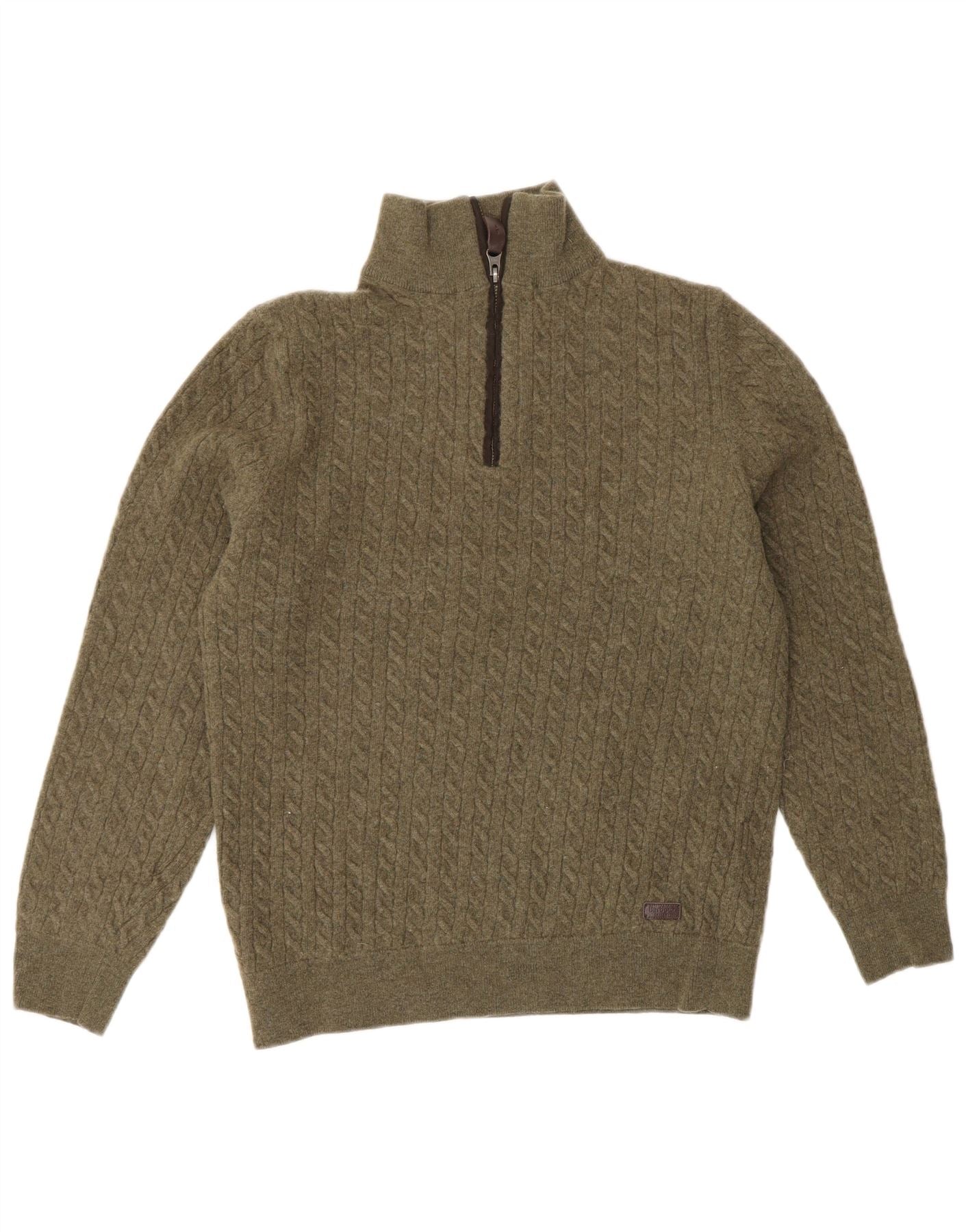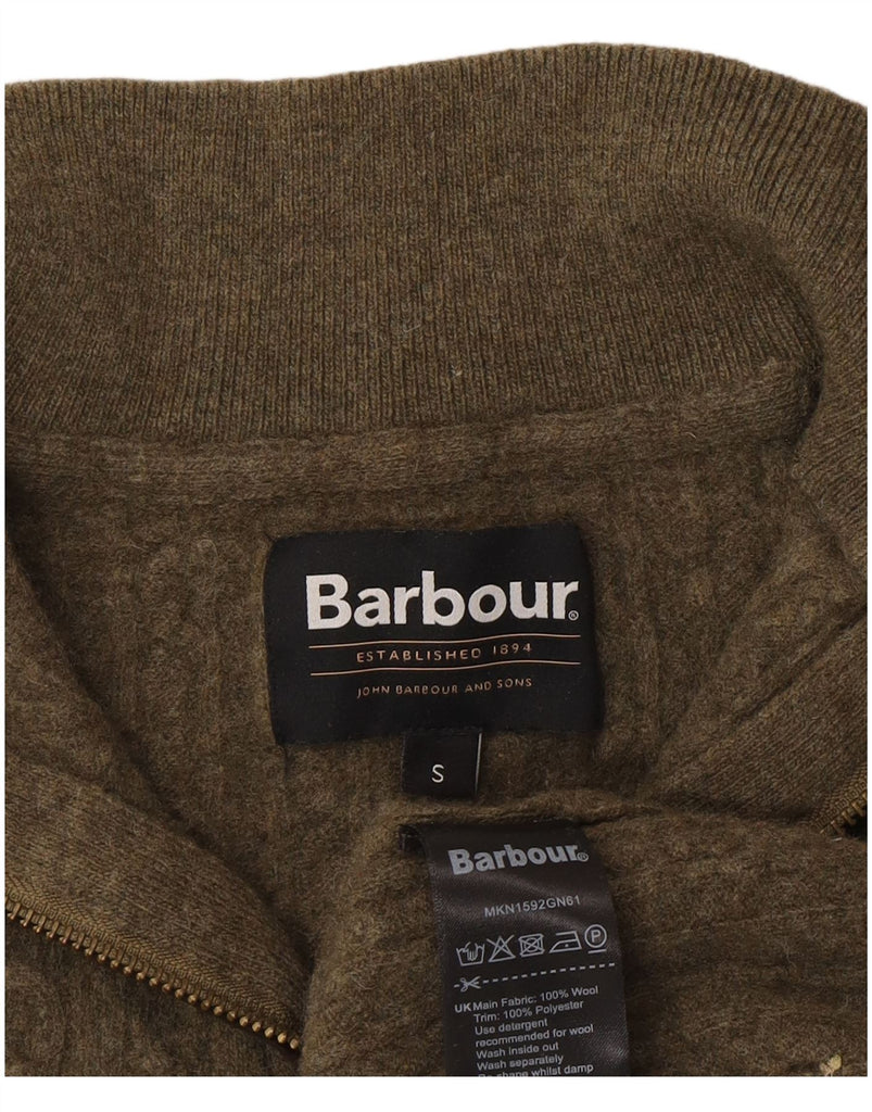 Suéter masculino BARBOUR com zíper e gola pequena de lã verde