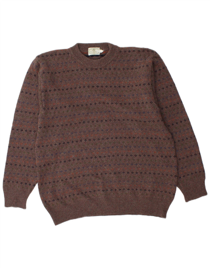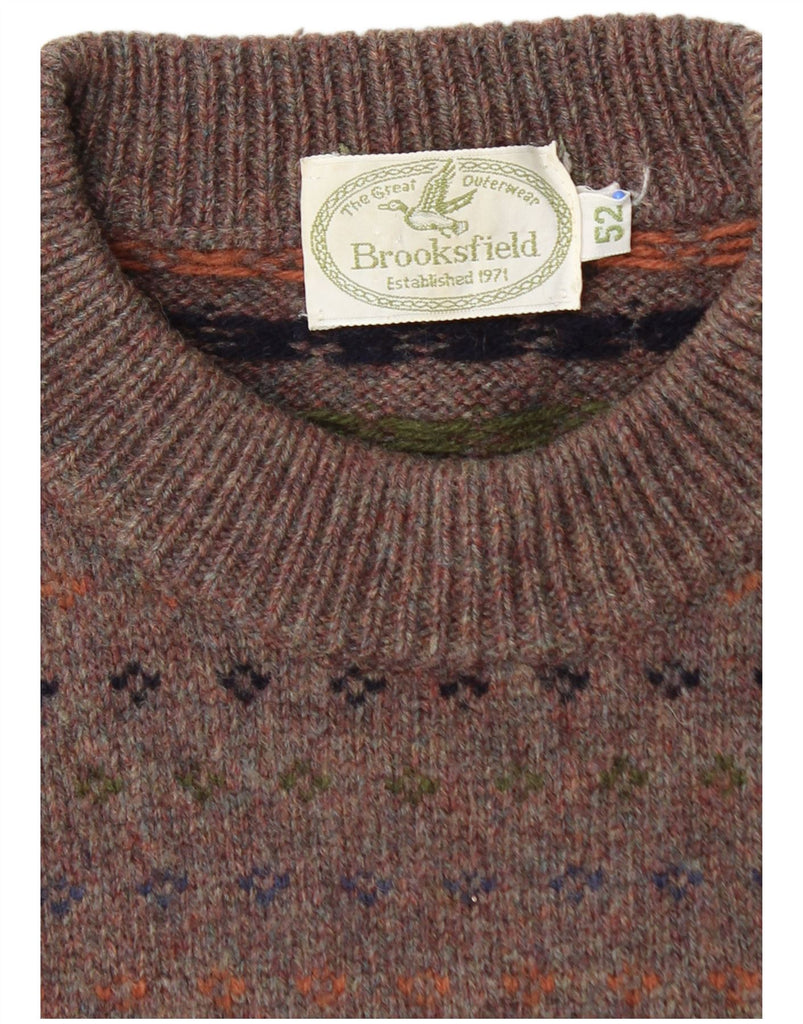 Suéter masculino BROOKSFIELD com gola redonda IT 52 grande lã listrada marrom
