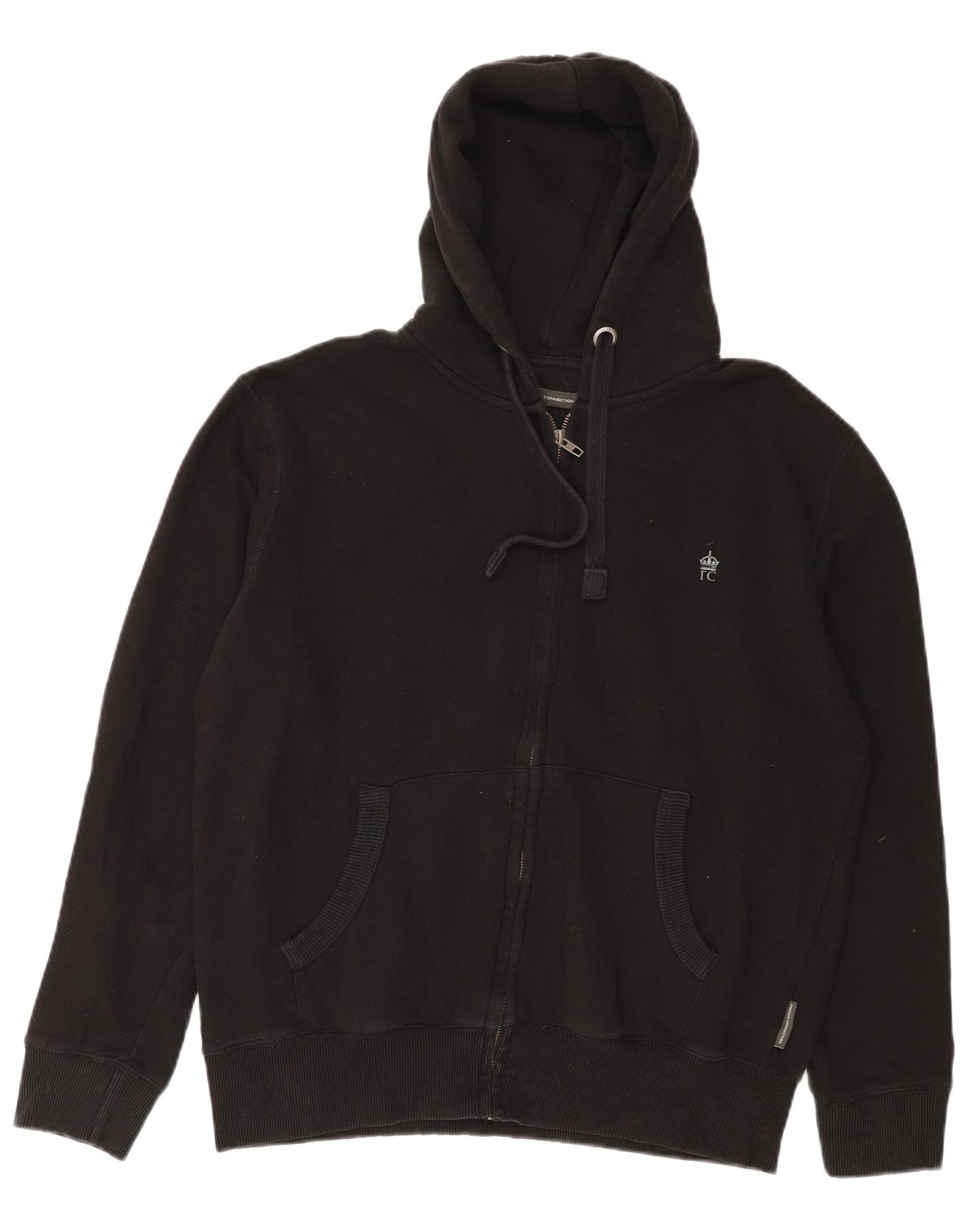 Suéter masculino com capuz e zíper FRENCH CONNECTION grande algodão preto