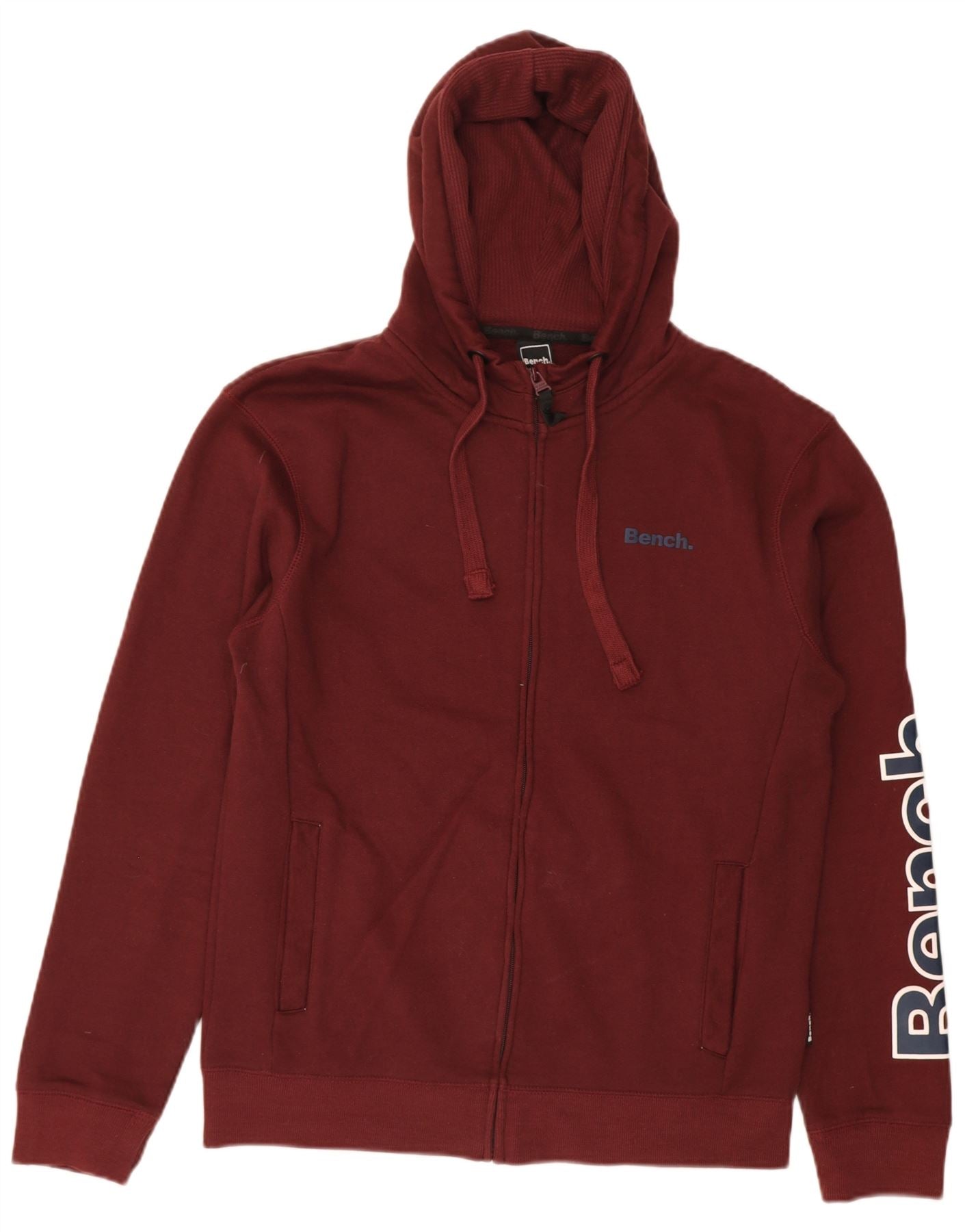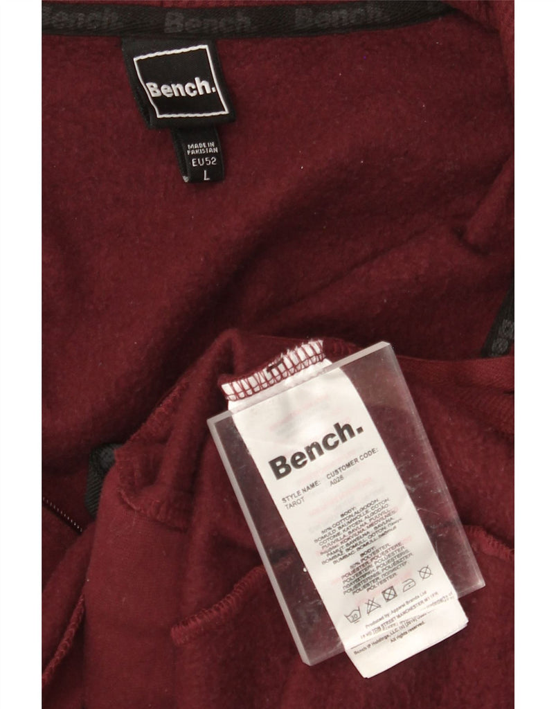 Suéter masculino com capuz e zíper gráfico BENCH EU 52 grande algodão borgonha