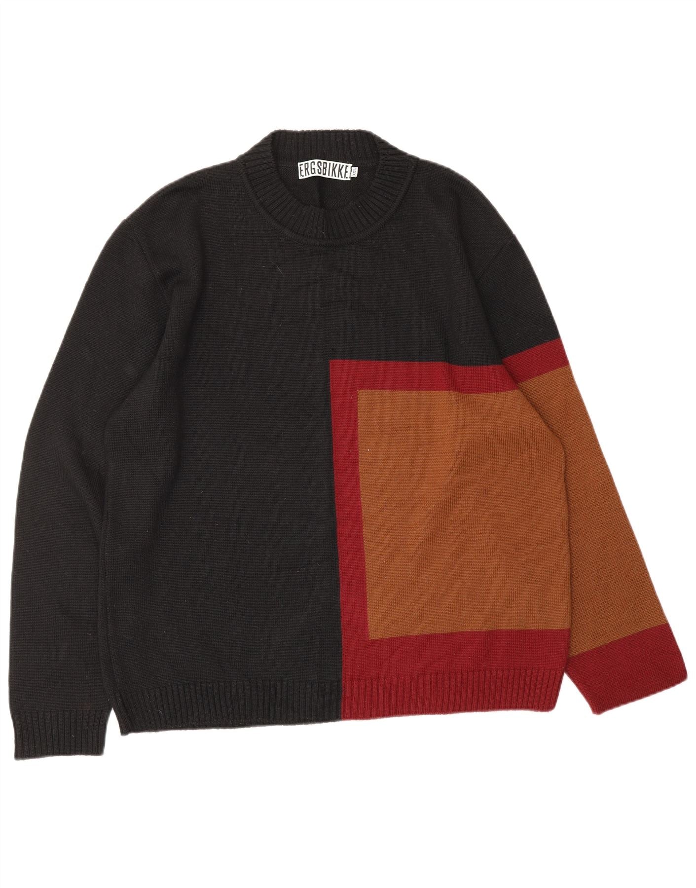 Suéter masculino com gola redonda BIKKEMBERGS 2XL lã colorblock preta
