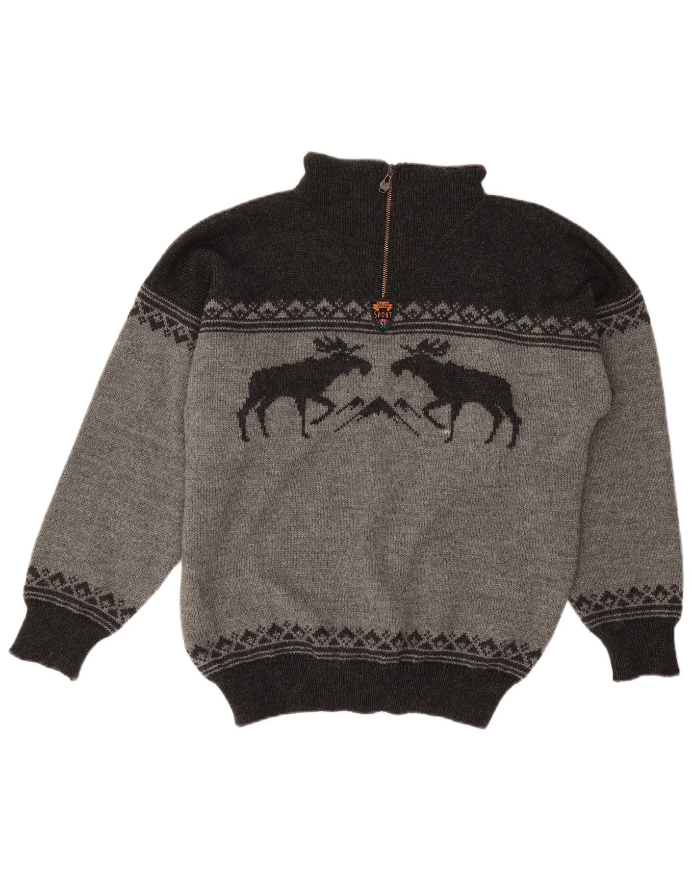 Suéter masculino DALE OF NORWAY com zíper e gola grande cinza Fair Isle Wool
