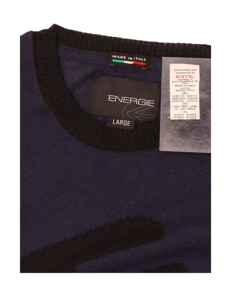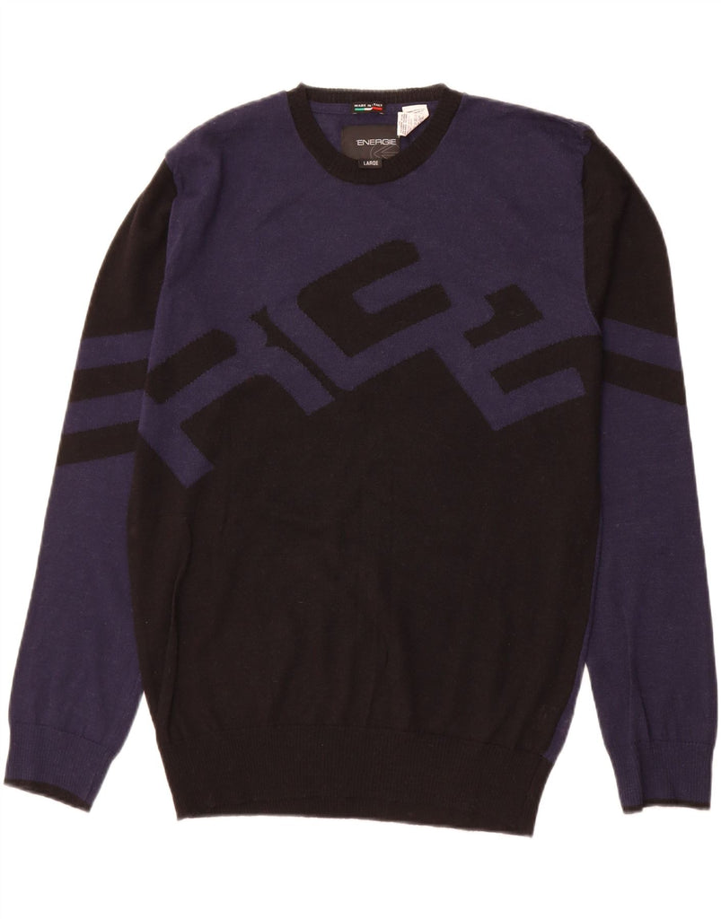 Suéter masculino ENERGIE com gola redonda, grande bloco colorido roxo acrílico