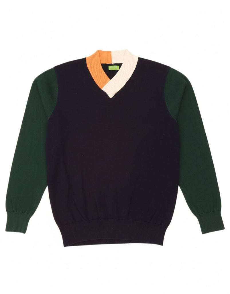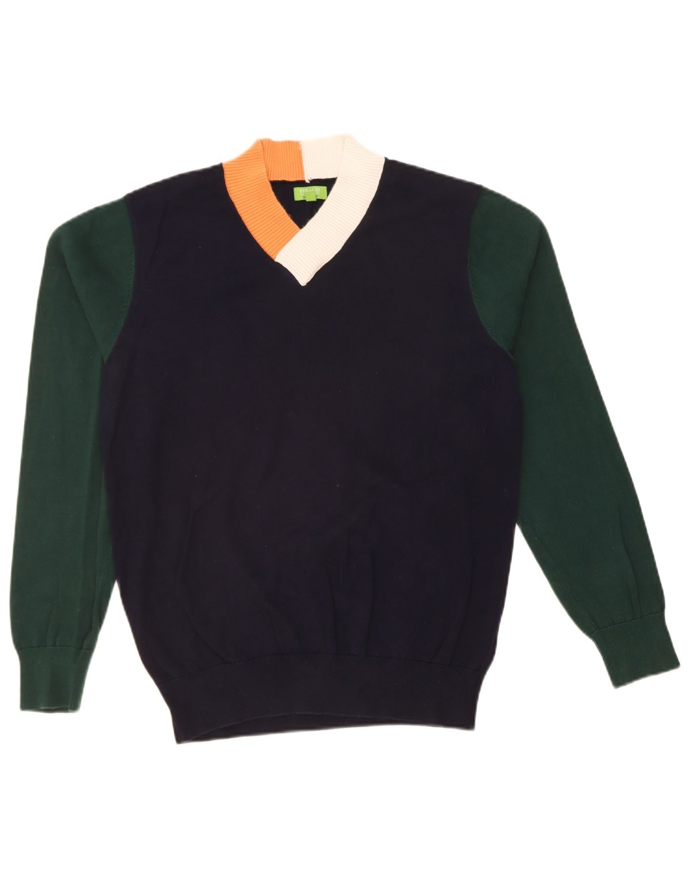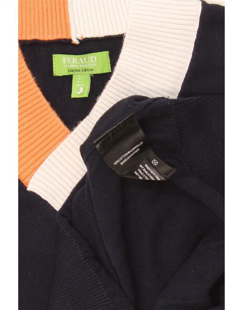 Suéter masculino FERAUD com decote em V, grande, azul marinho, algodão colorblock