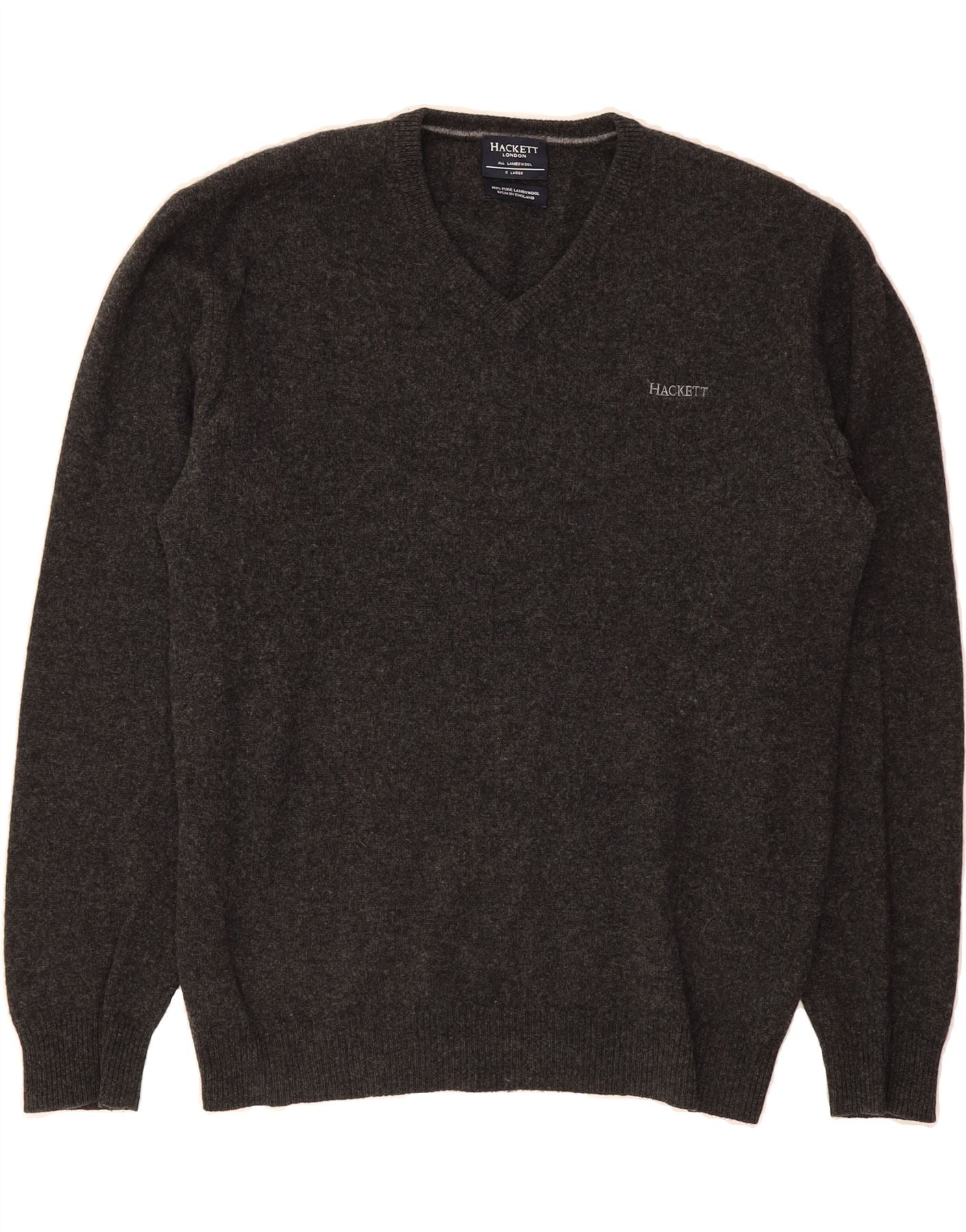 Suéter masculino HACKETT London com decote em V XL lã de cordeiro cinza