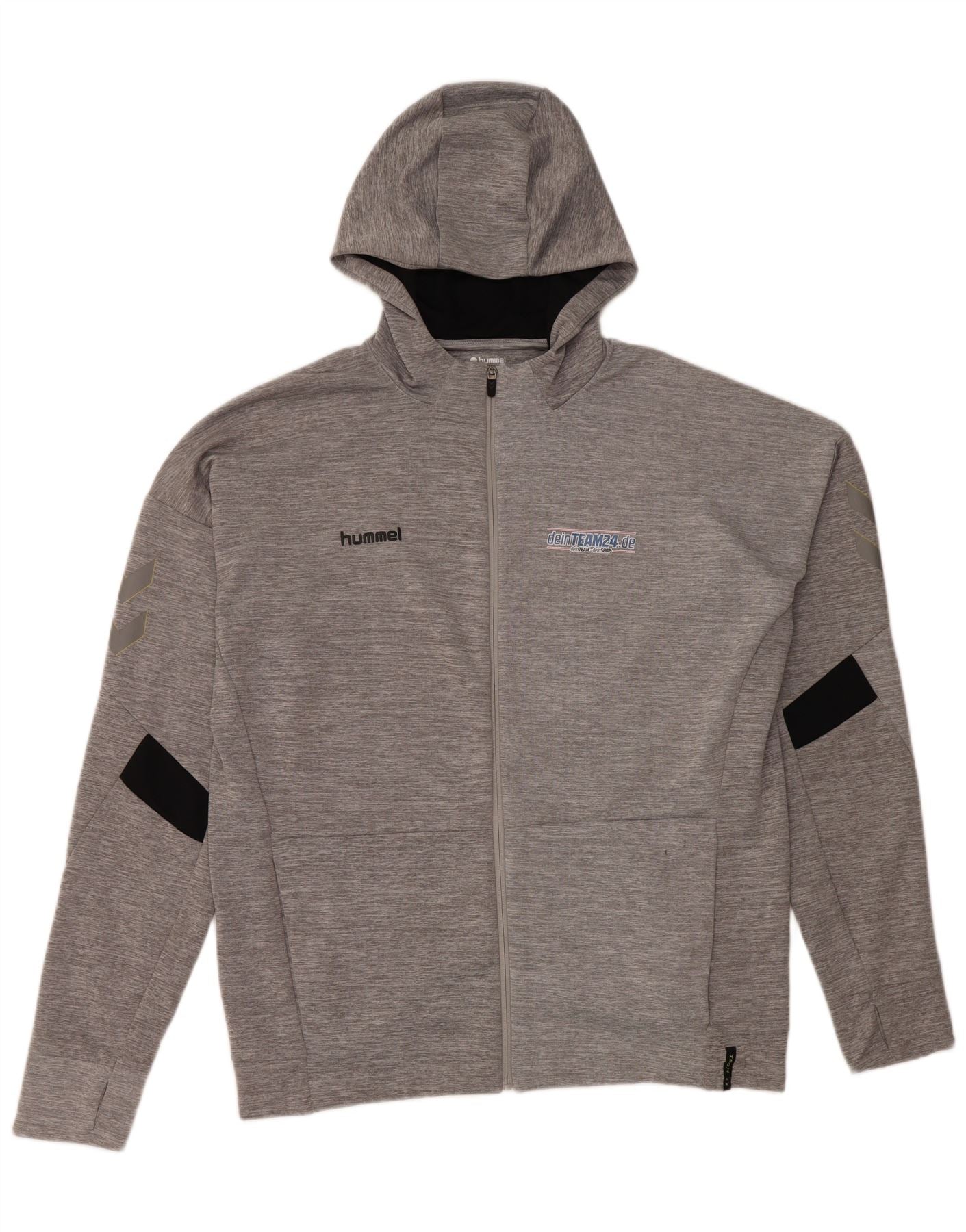 Suéter masculino HUMMEL com capuz e zíper grande poliéster manchado cinza