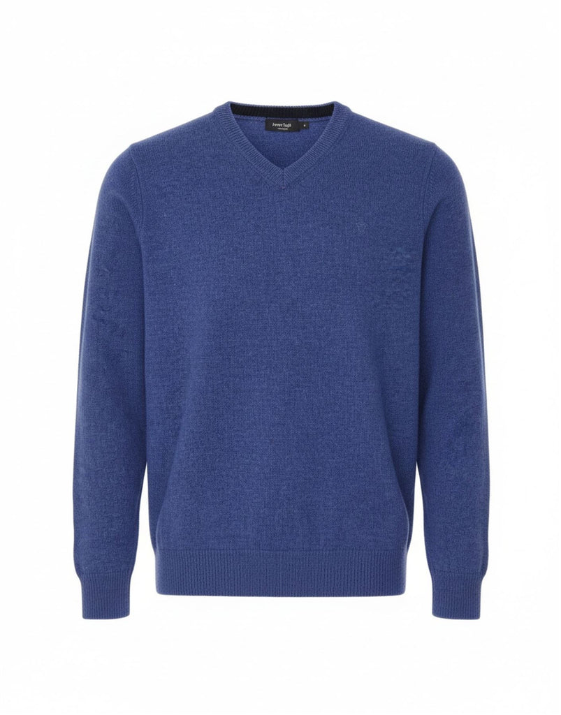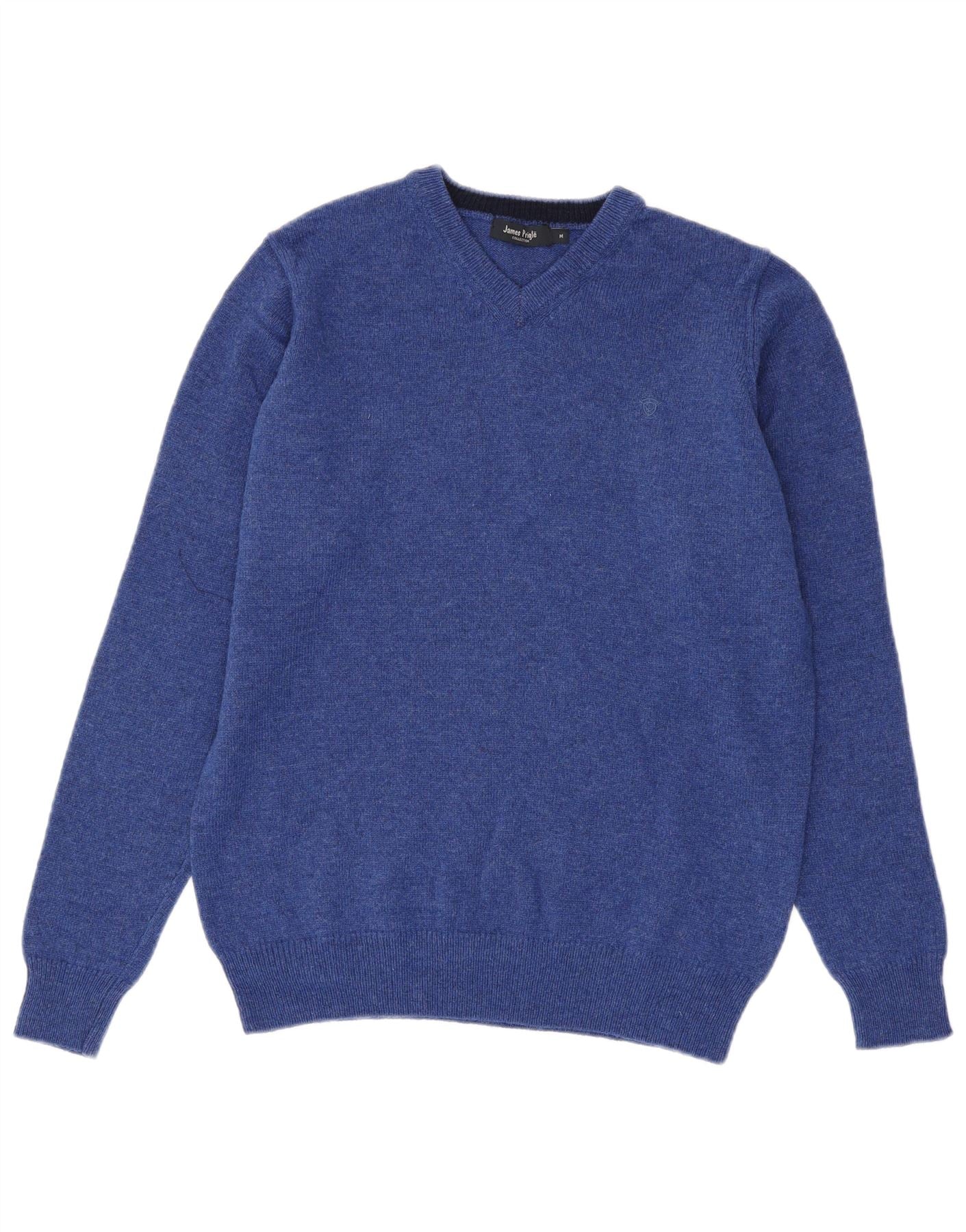 Suéter masculino JAMES PRINGLE com decote em V, azul médio, lã nova