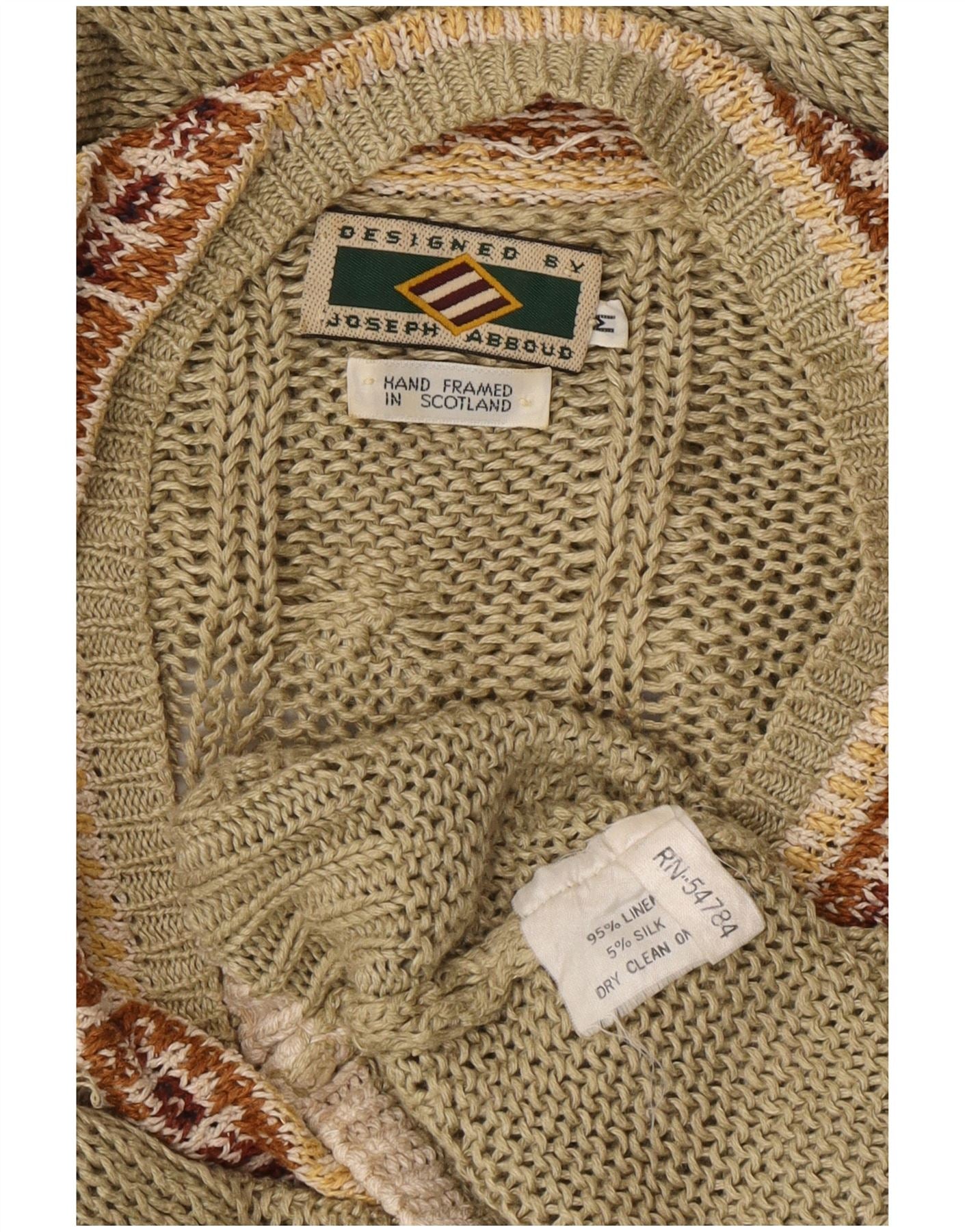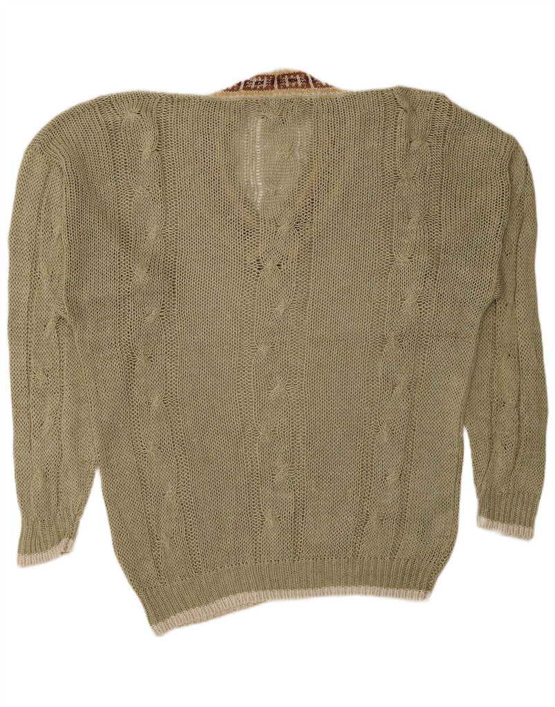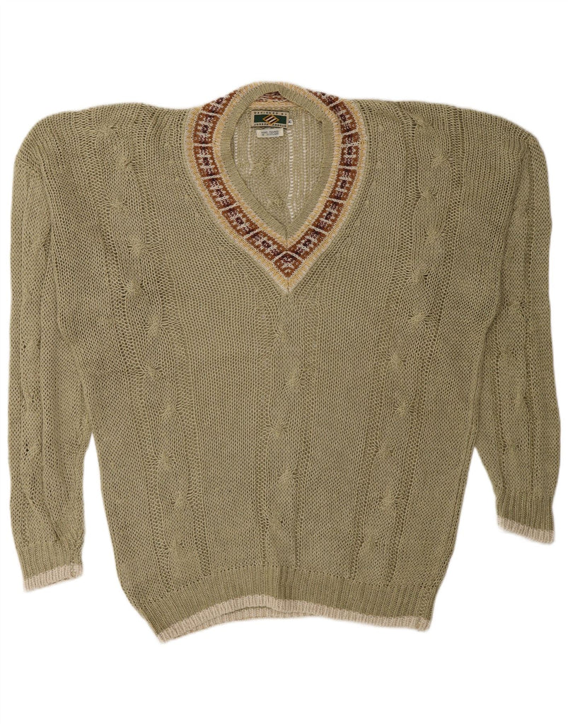 Suéter masculino JOSEPH ABBOUD com decote em V, médio cáqui Fair Isle Linen