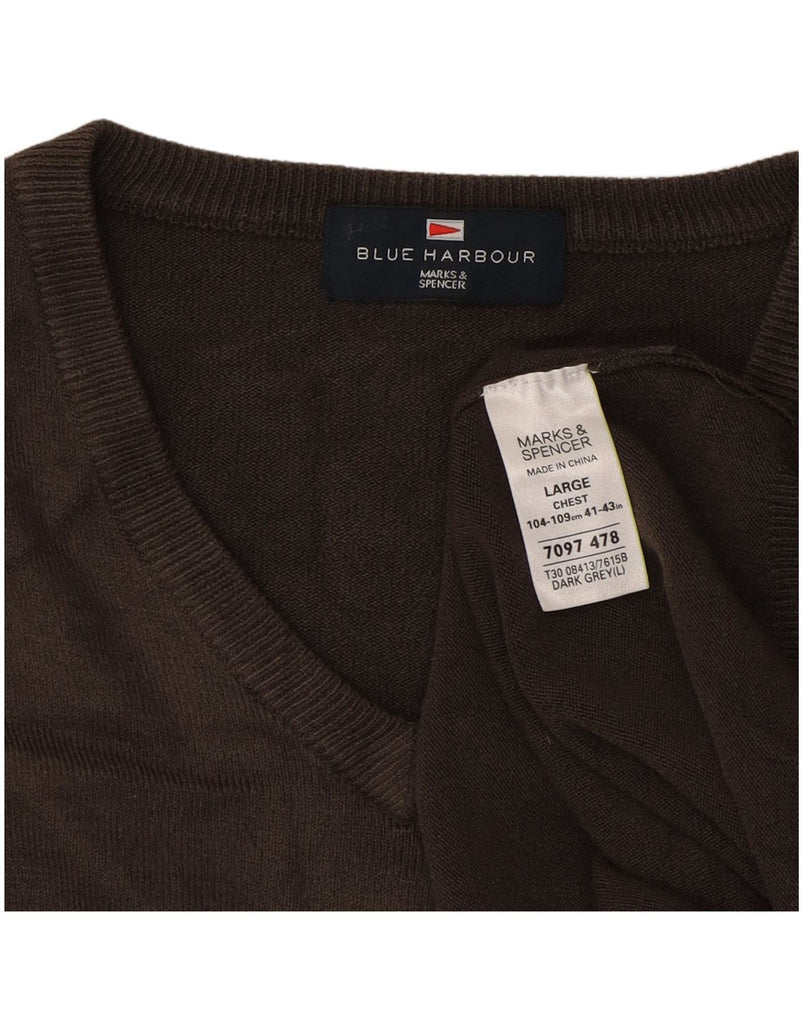 Suéter masculino MARKS & SPENCER Blue Harbor com decote em V grande cinza acrílico