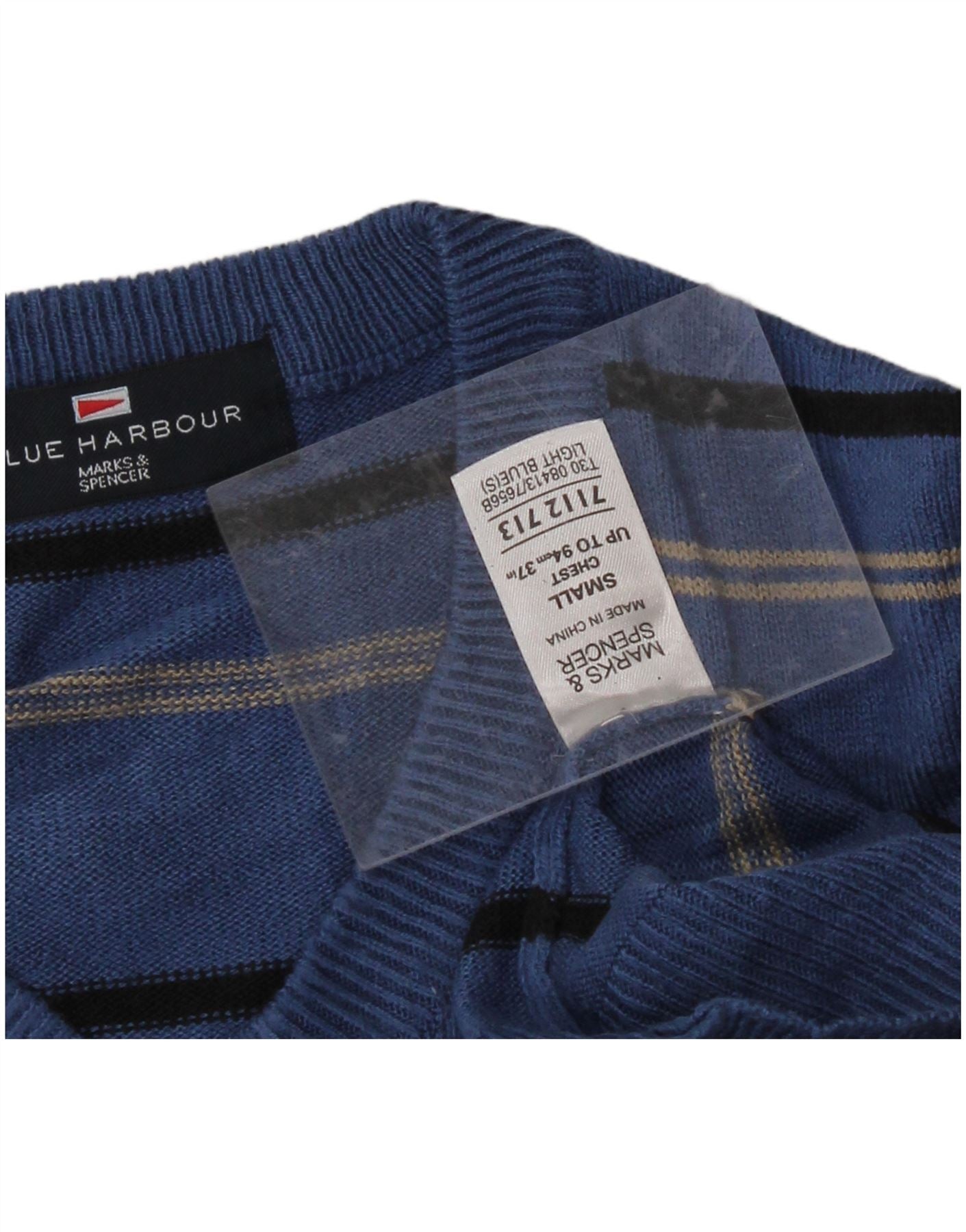 Suéter masculino MARKS & SPENCER Blue Harbor com decote em V pequeno azul marinho