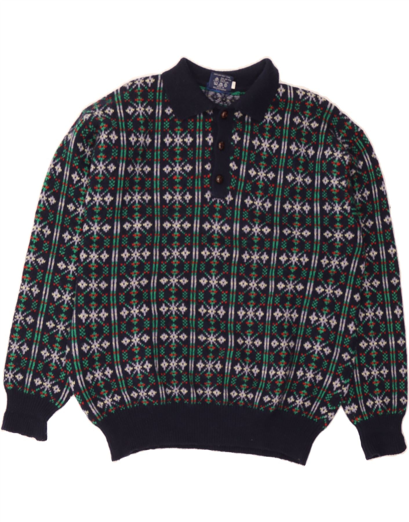 Suéter masculino MC NEAL com gola polo XL azul marinho Fair Isle Wool
