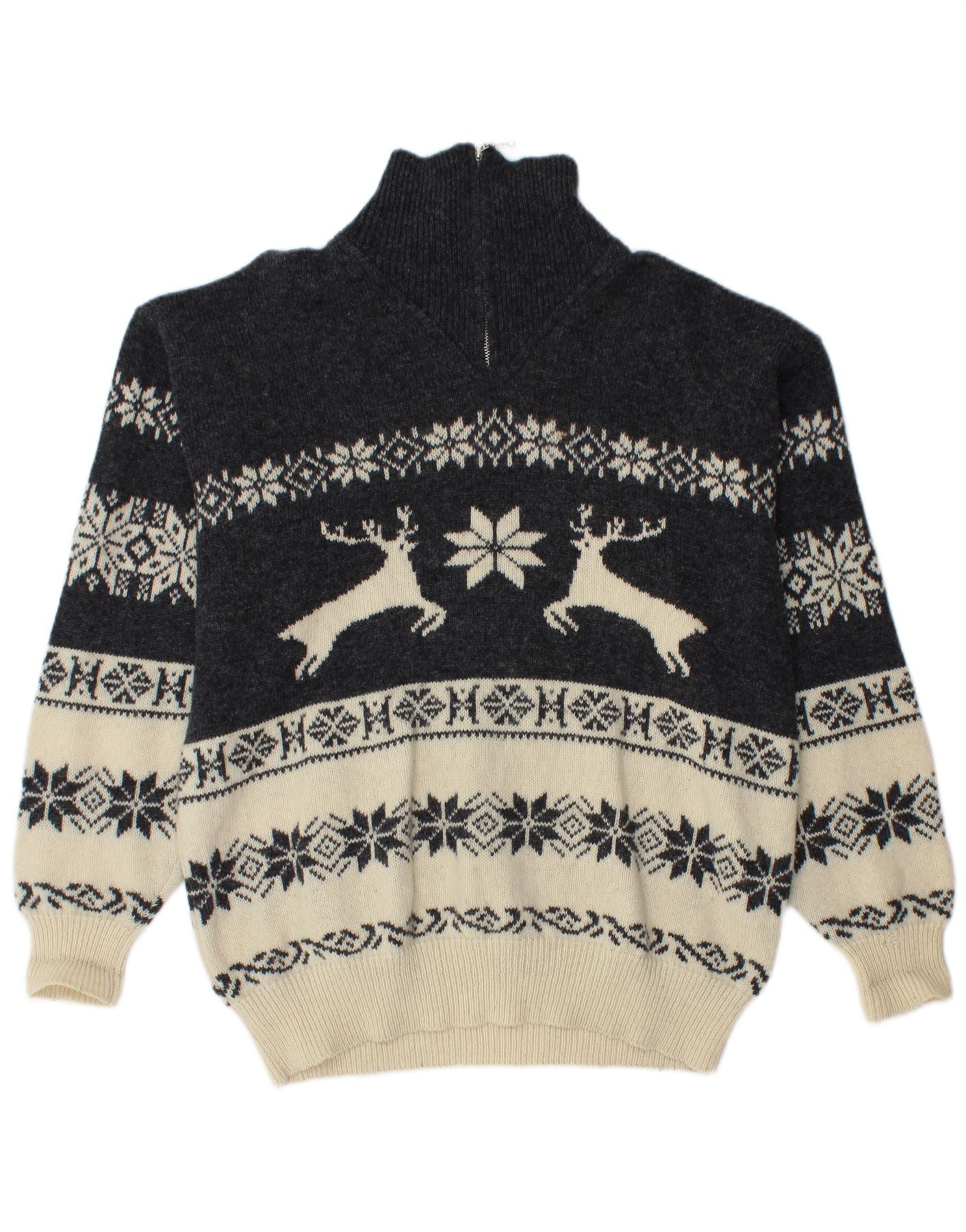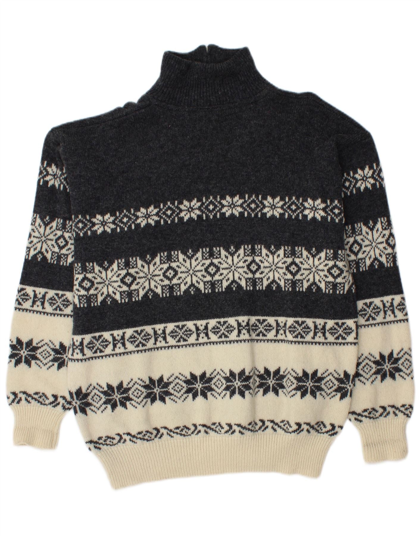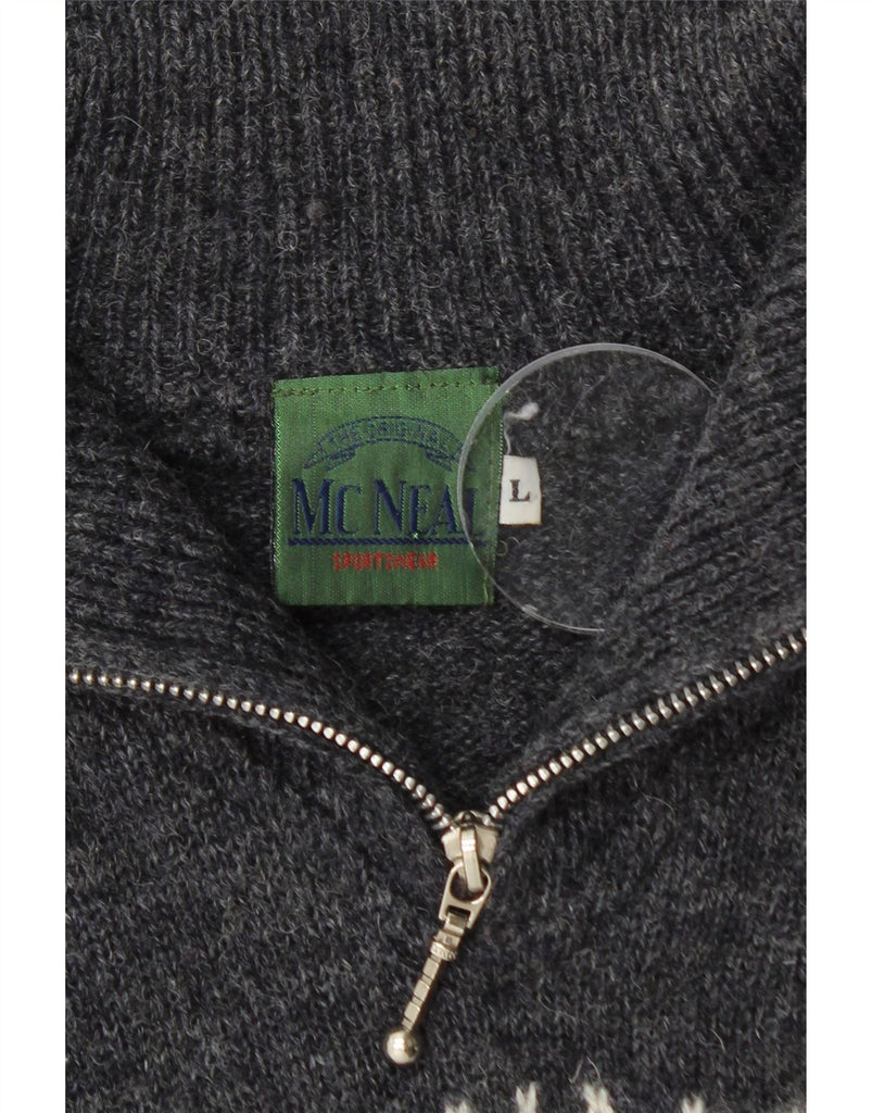 Suéter masculino MC NEAL com zíper e gola grande cinza Fair Isle Wool