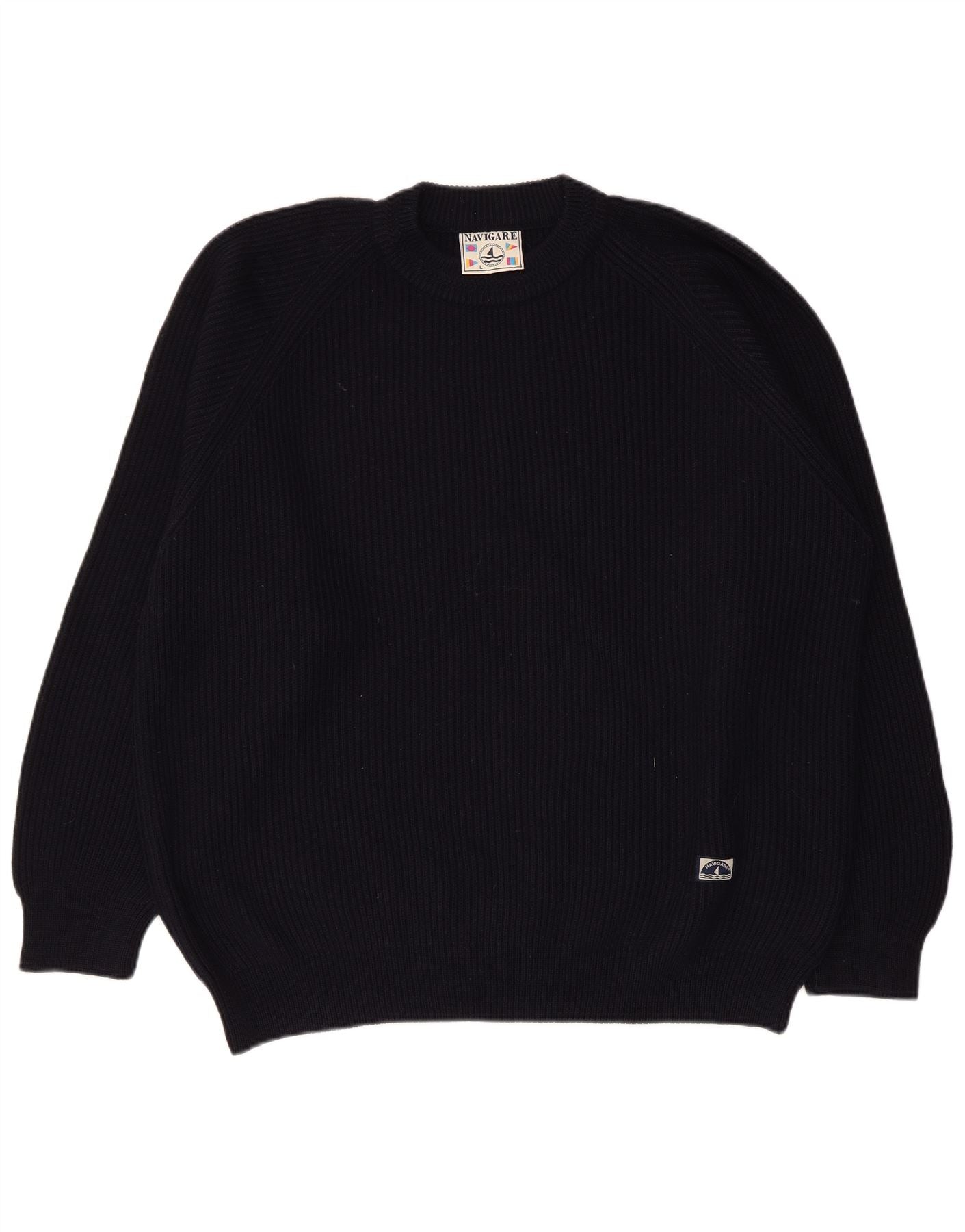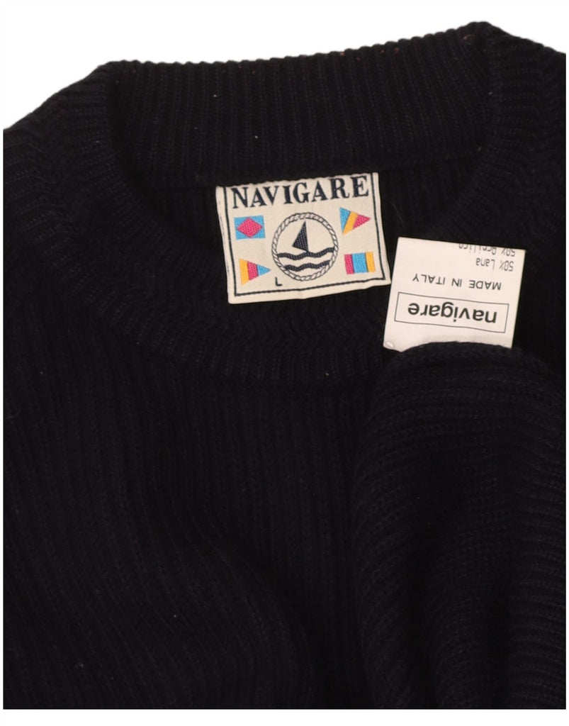 Suéter masculino NAVIGARE com gola redonda, grande lã azul marinho