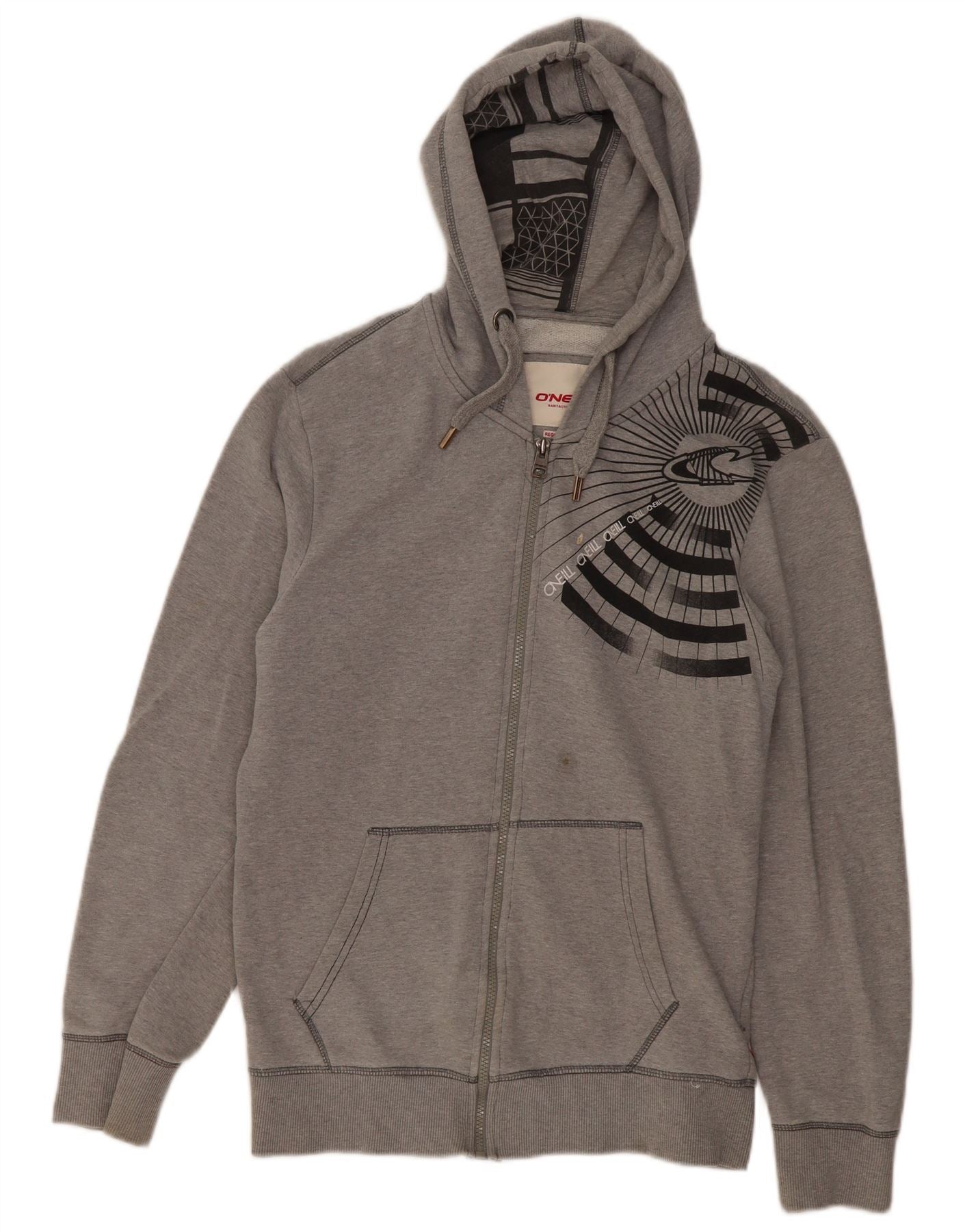 Suéter masculino O'NEILL com capuz e zíper gráfico de ajuste regular, algodão cinza grande