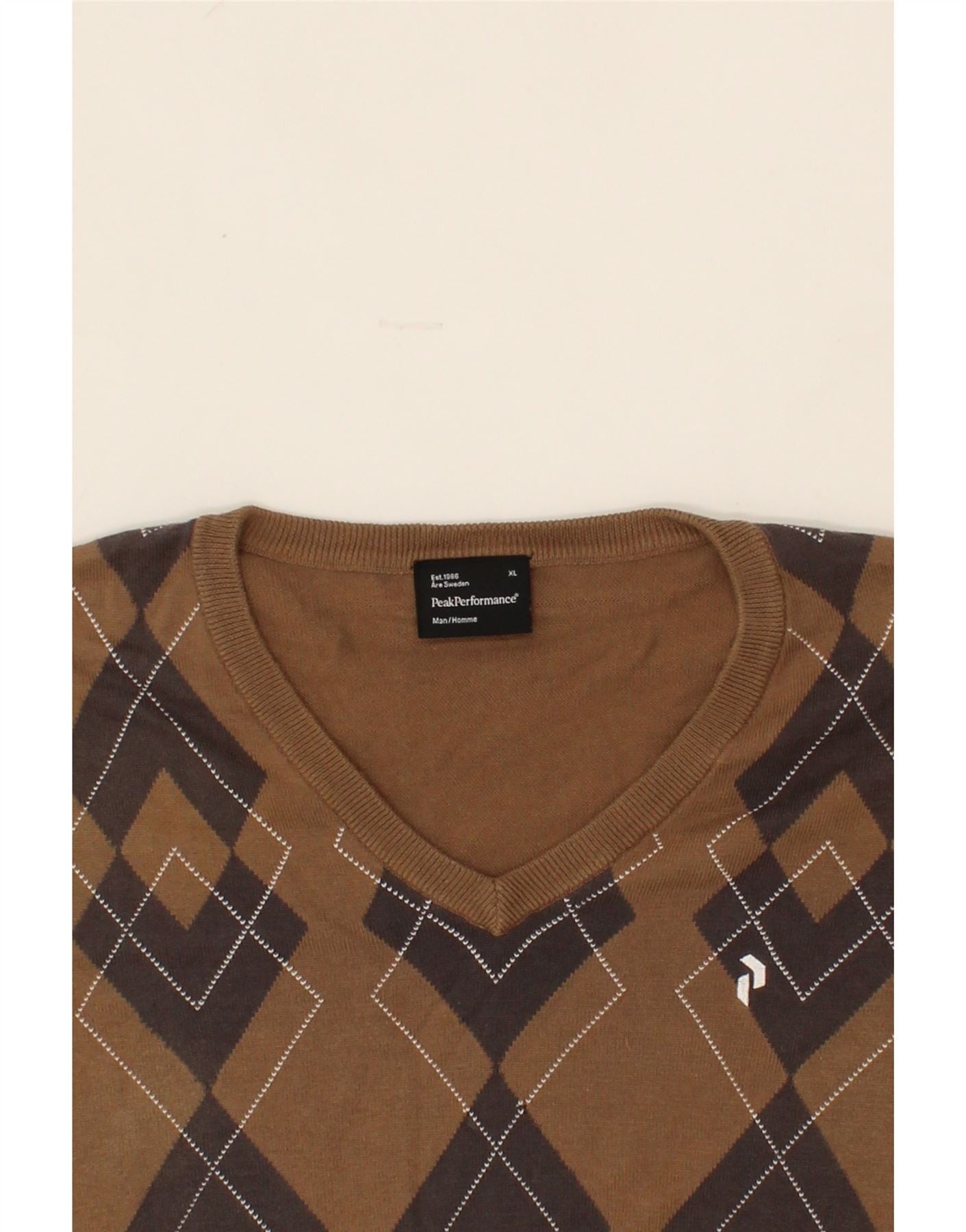 Suéter masculino PEAK PERFORMANCE com decote em V XL marrom Argyle/algodão diamante