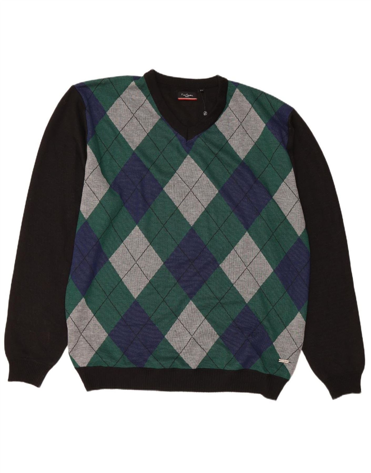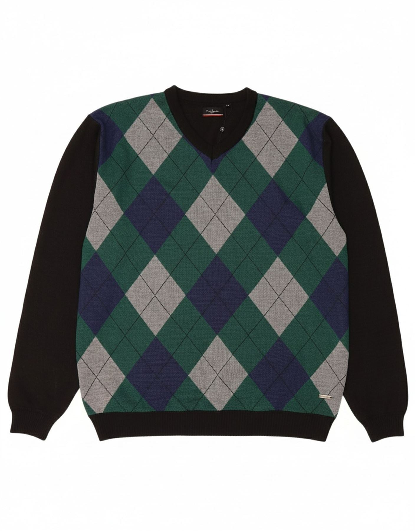 Suéter masculino PIERRE CARDIN com decote em V 5XL preto Argyle/Diamante