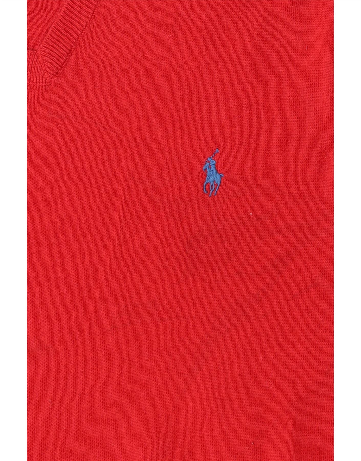 Suéter masculino RALPH LAUREN com decote em V, algodão vermelho médio