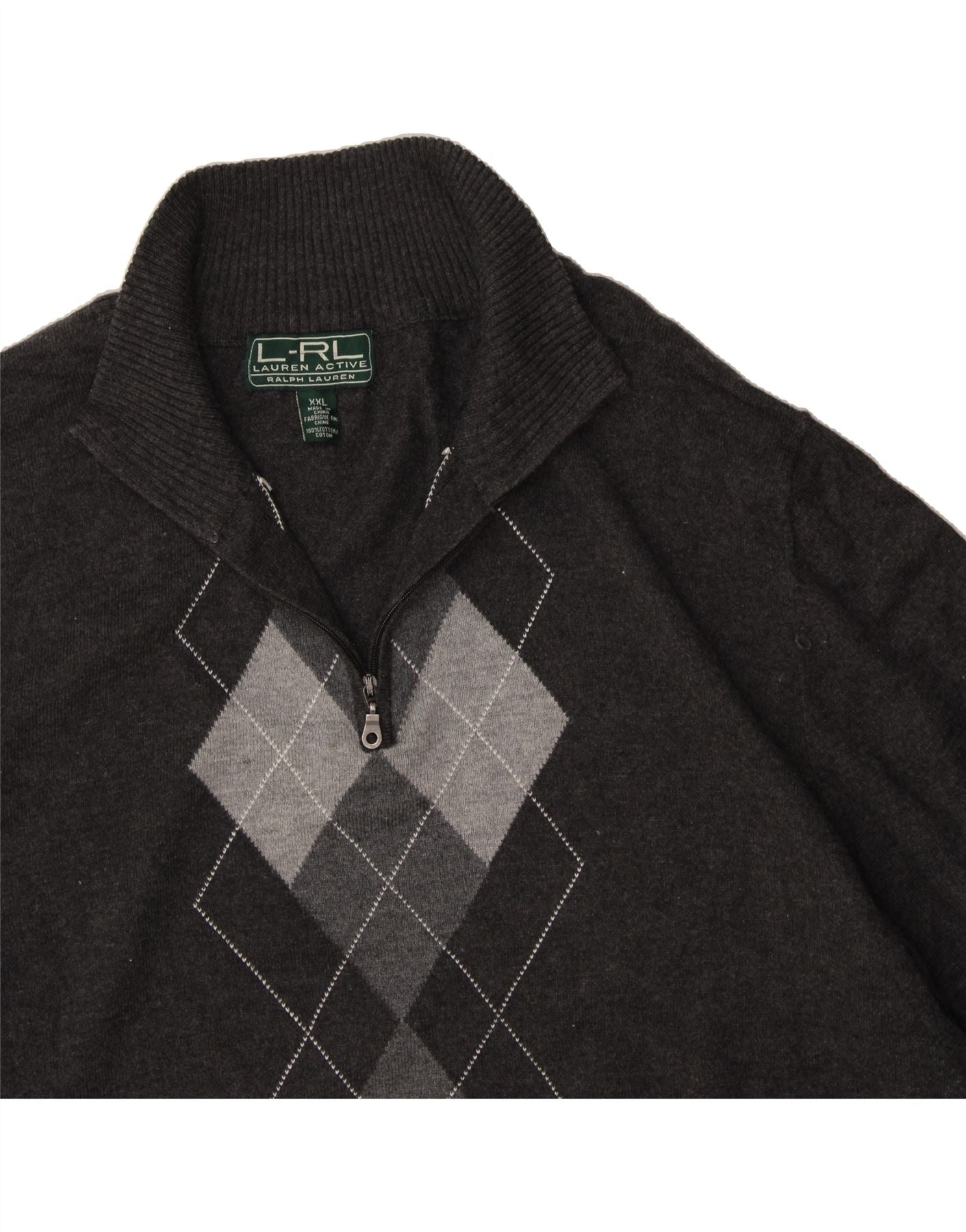 Suéter masculino RALPH LAUREN com zíper e gola 2XL cinza Argyle/algodão diamante