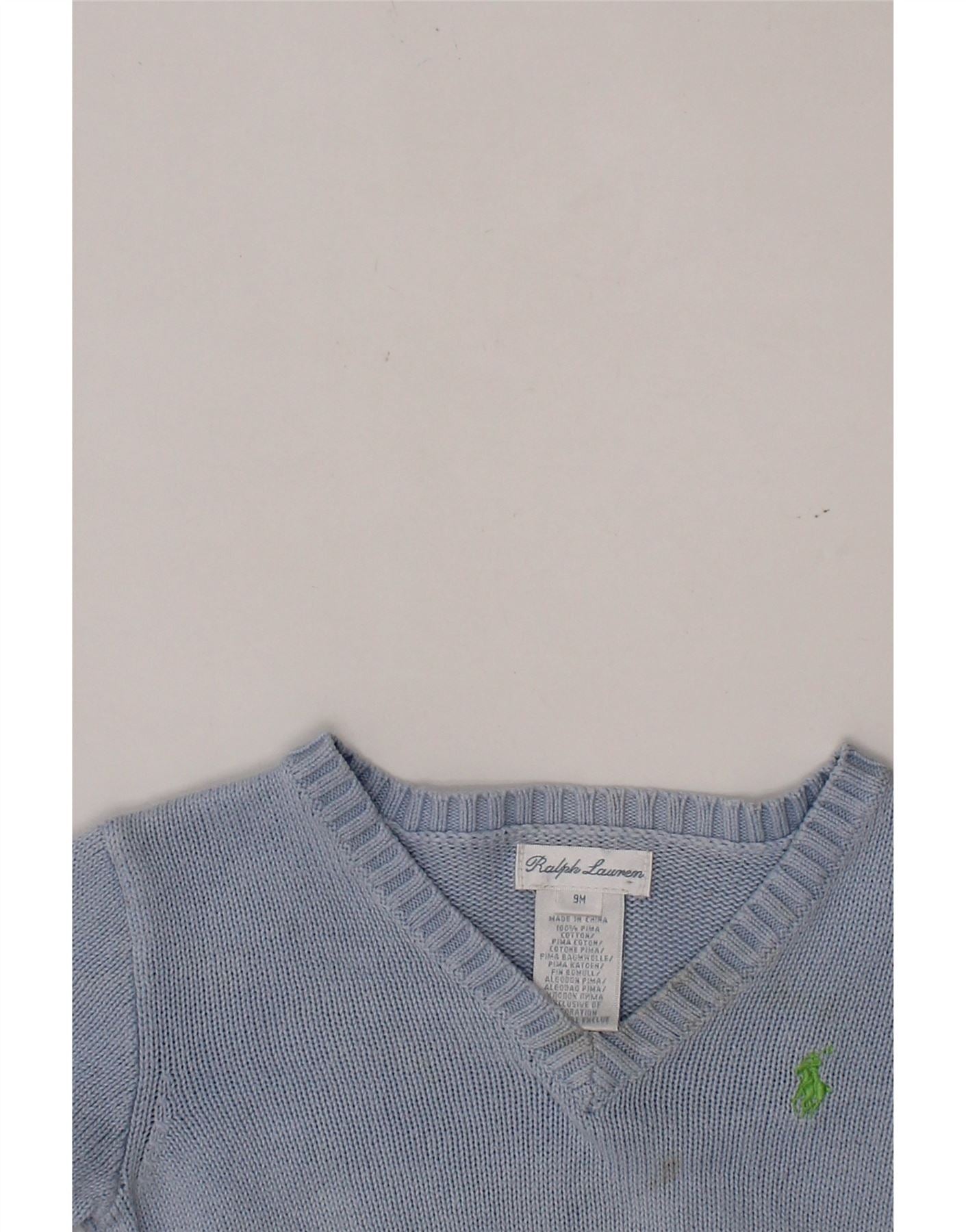 Suéter RALPH LAUREN para bebês meninos com gola V de 6 a 9 meses de algodão azul