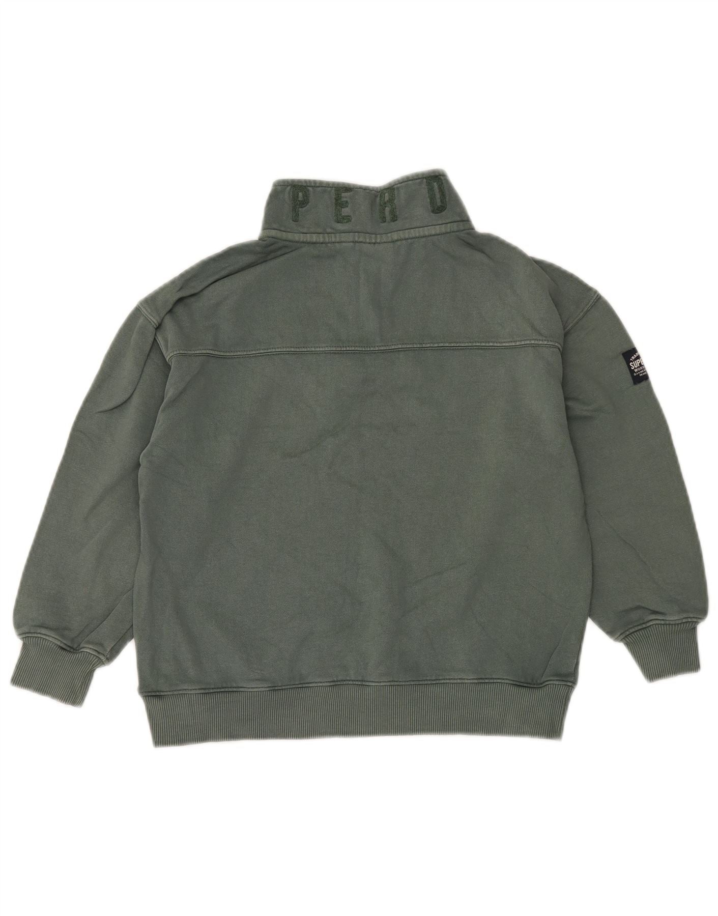 Suéter SUPERDRY para meninos com gola e zíper gráfico 7-8 anos algodão verde