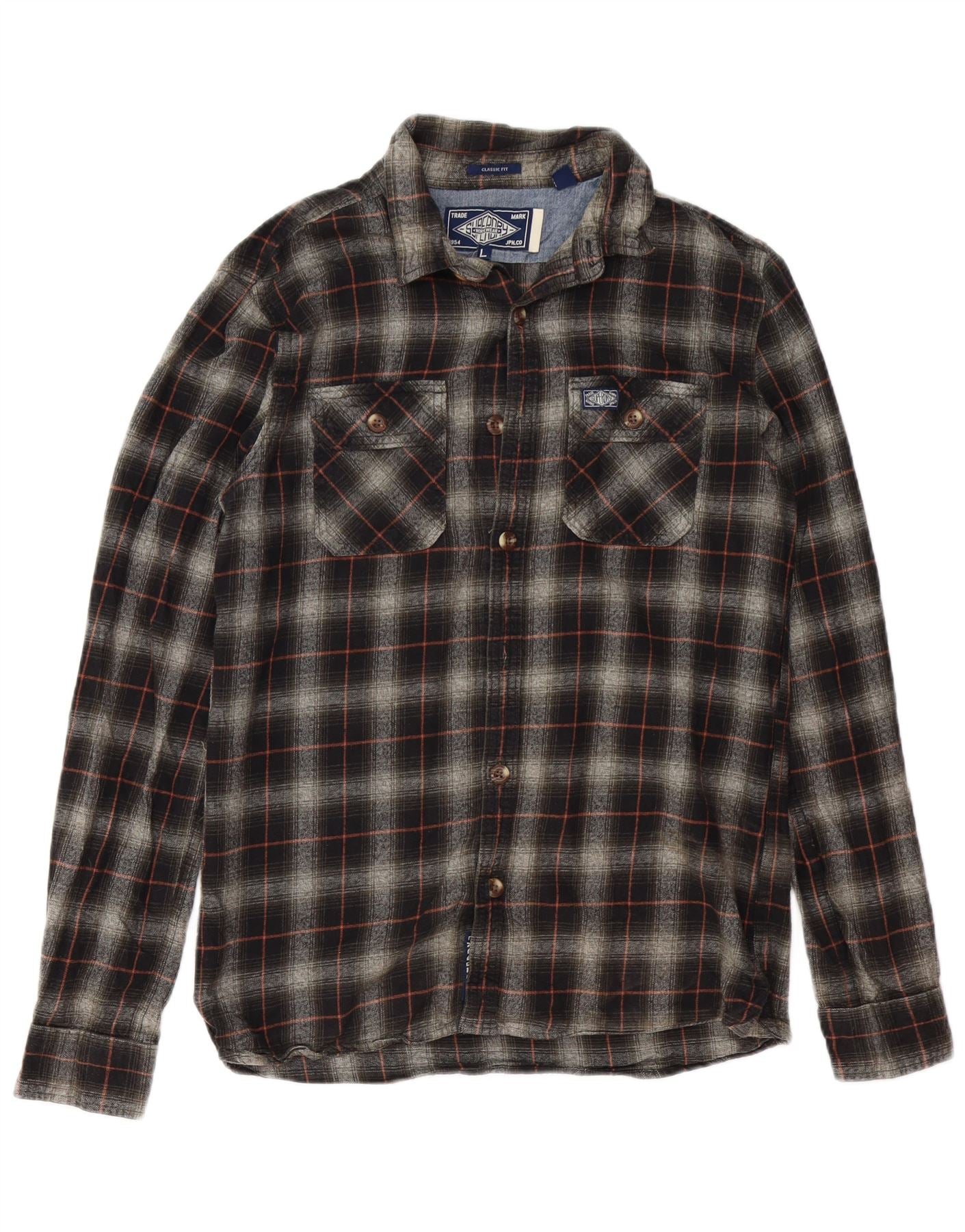 Camisa masculina de flanela SUPERDRY Classic Fit grande algodão xadrez preto