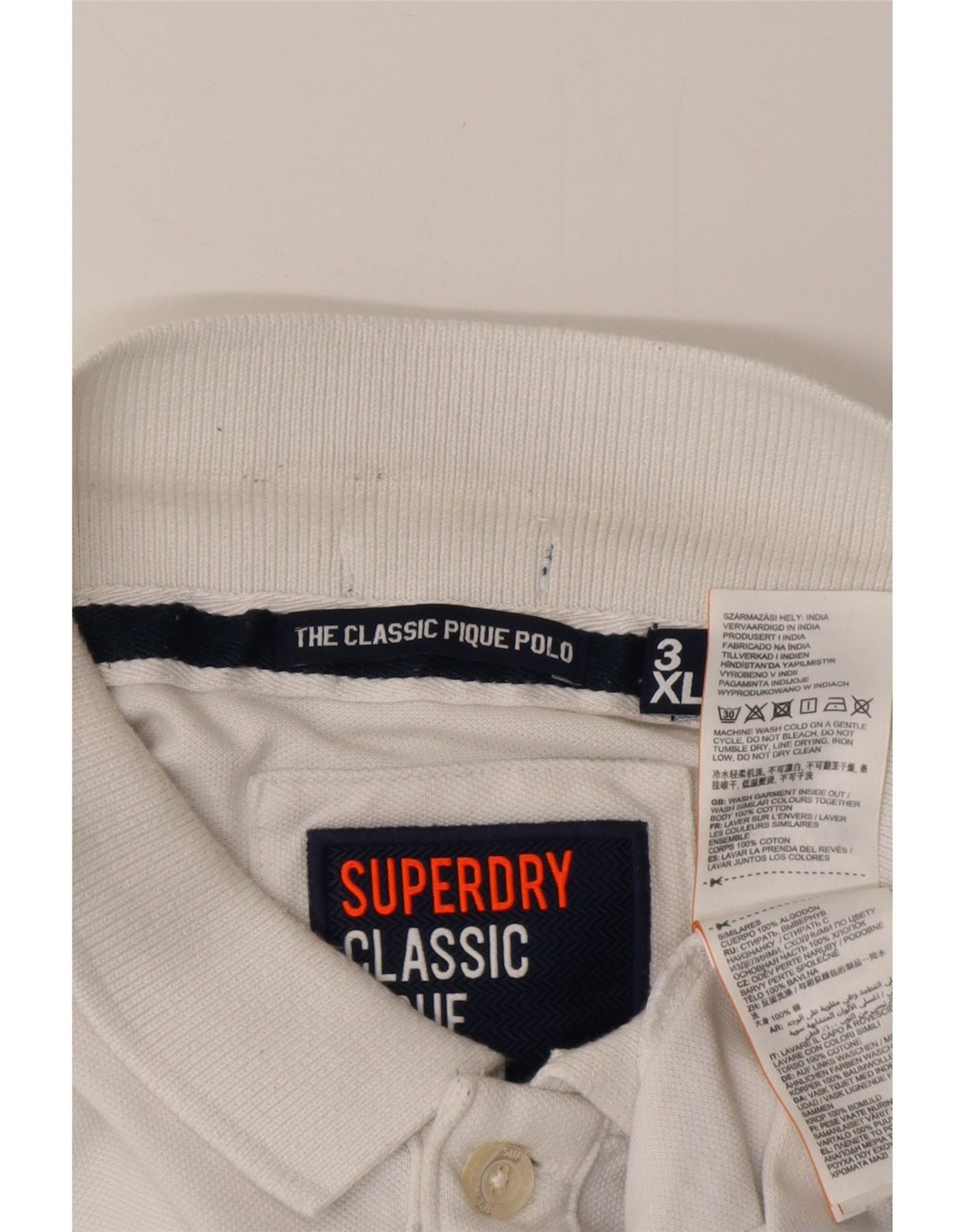 Camisa polo masculina SUPERDRY Classic Fit 3XL algodão branco